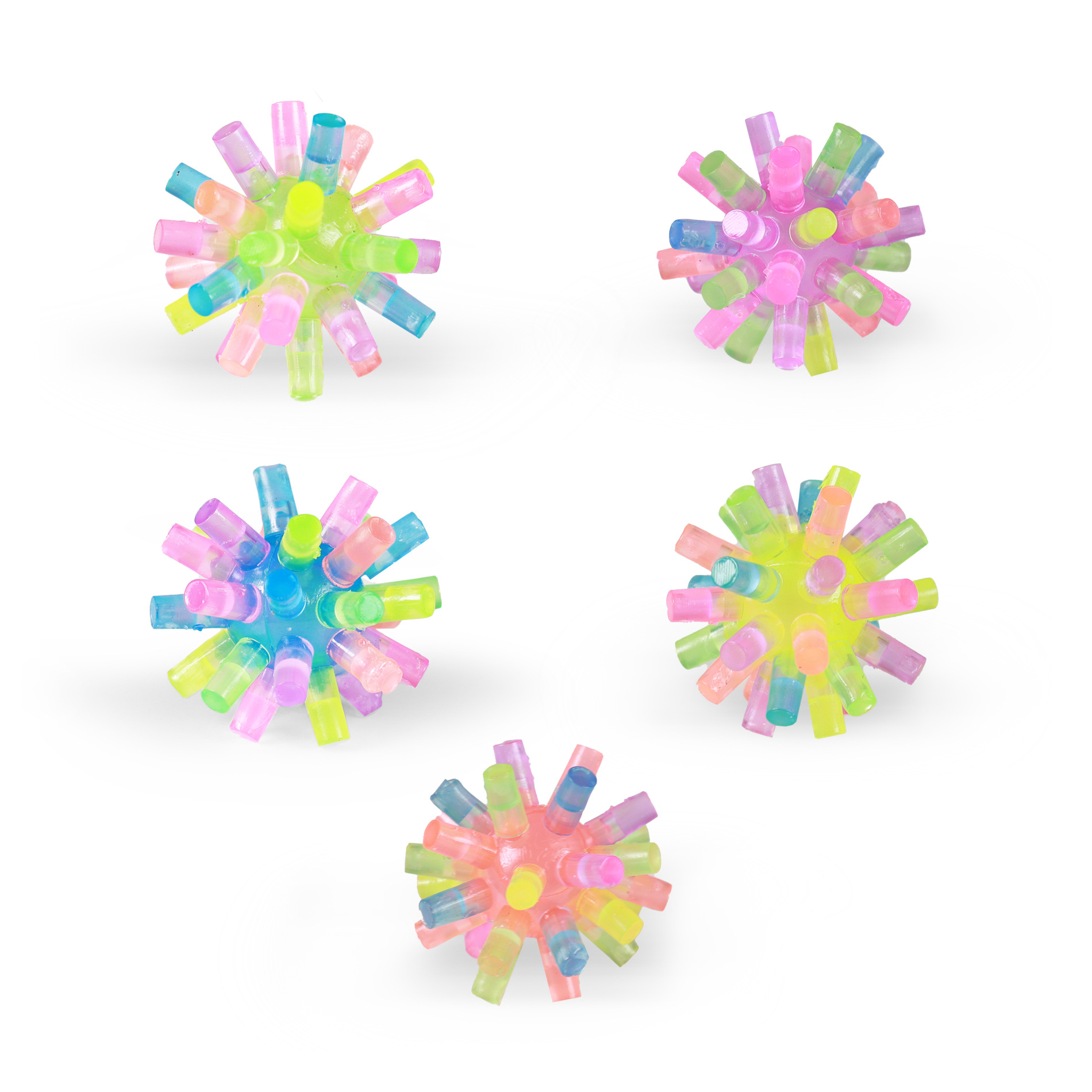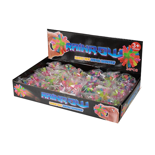 Barevný skákací míček s ostny. Jsou to hračky, se kterými se dá dosyta vyhrát či jen zkrátit čas při dlouhé chvíli. U tohoto zboží nelze vybrat druh. Prodej pouze po celém balení 24 ks.