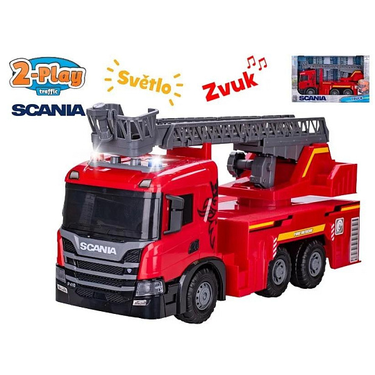 Mikro Trading 2-Play Traffic auto hasiči Scania 51cm na setrvačník na baterie se světlem a zvukem v krabičce