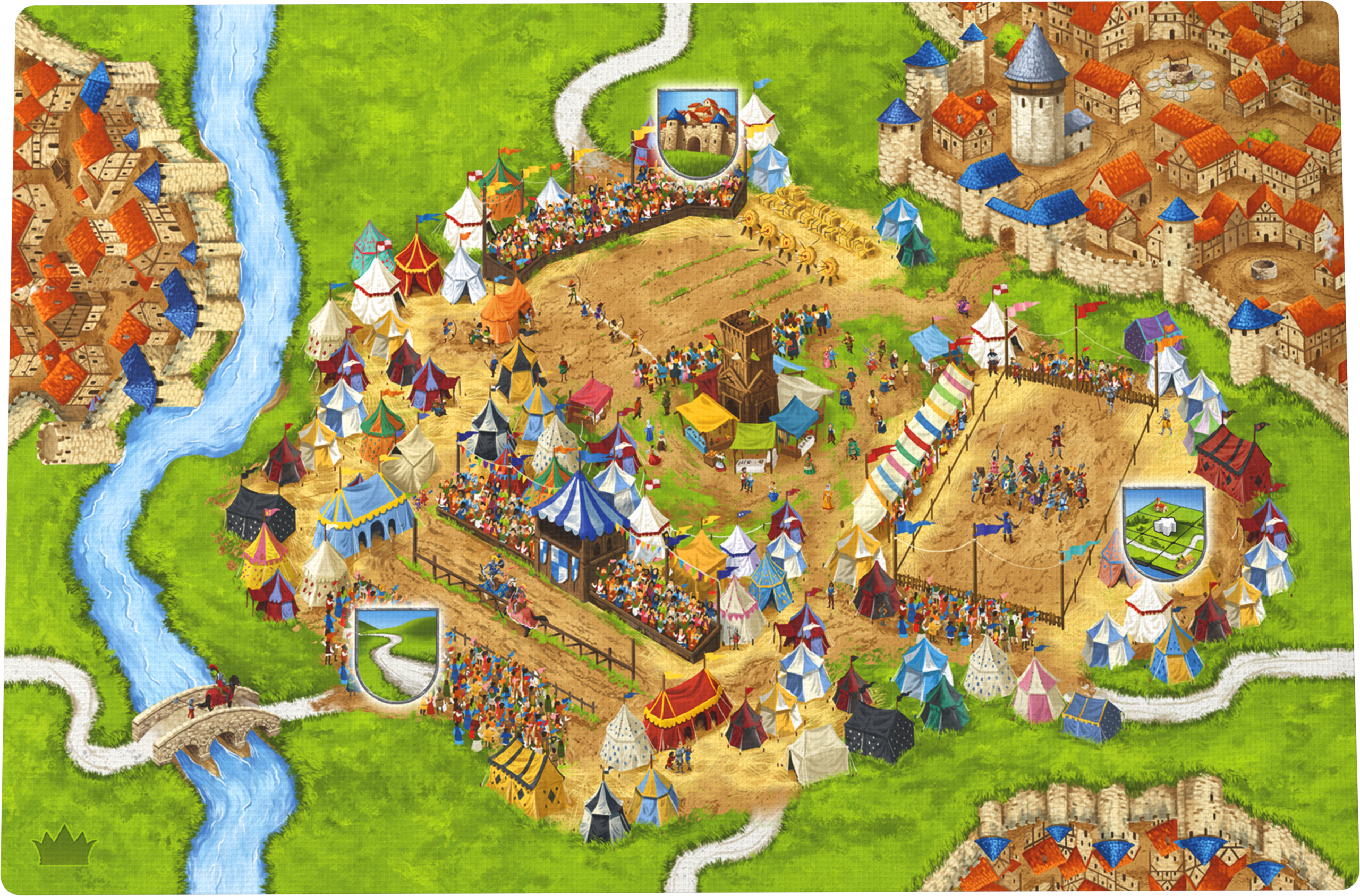 Vítejte v novém rozšíření legendární hry Carcassonne, kde se zapojíte do velkolepého královského turnaje. Vyšlete své rytíře, lupiče a sedláky, aby pro vás nasbírali co nejvíce trofejí a získali tak slávu a vítězství. Buďte strategičtí a opatrně volte, kterého družiníka přihlásíte do turnaje, protože každý z nich disponuje jedinečnou silou. Pokud se vám podaří zvítězit, bude na vaši počest postavena socha s vaším štítem, která vám přinese cenné body!