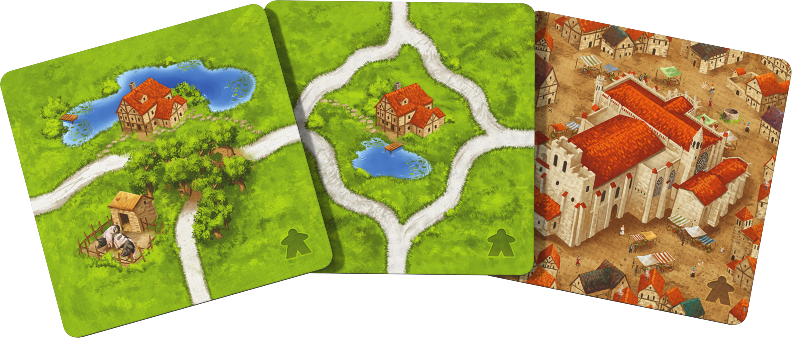 - Hostince a katedrály: Rozšiřte svou hru o 24 nových kartiček krajiny, které přináší hostince pro cesty a katedrály do měst.