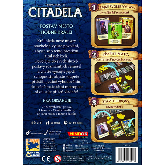 Karetní hra s překrásnou grafikou karet. Cílem hráčů je postavit své město z karet staveb. Za každou kartu musí ale zaplatit zlatem. K němu se mohou dostat pomocí dalších karet hrdinů. V každém kole hry si hráči volí různé role. Každá z těchto rolí má určité silné a slabé stránky, které hráč během tahu využívá. Je také důležité skrýt svoji totožnost před protihráči a odhadnout jejich strategii. Hráč který na konci hry vlastní nejvíce obodované město vyhrává.