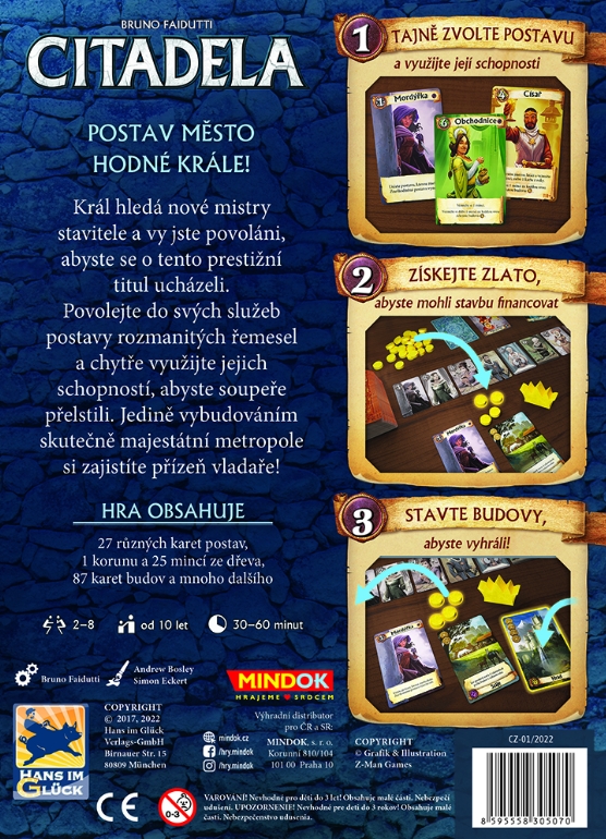 Karetní hra s překrásnou grafikou karet. Cílem hráčů je postavit své město z karet staveb. Za každou kartu musí ale zaplatit zlatem. K němu se mohou dostat pomocí dalších karet hrdinů. V každém kole hry si hráči volí různé role. Každá z těchto rolí má určité silné a slabé stránky, které hráč během tahu využívá. Je také důležité skrýt svoji totožnost před protihráči a odhadnout jejich strategii. Hráč který na konci hry vlastní nejvíce obodované město vyhrává.