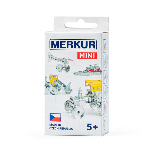 Startovací mini stavebnice Merkur, z které je možné sestavit 1 model-buldozér. Ideální pro trénink jemné motoriky a představivost. Vhodné i pro děti, které s Merkurem začínají, ale také pro sběratele. Se sestavenými modely si lze hrát, jsou velmi odolné. Stavebnice obsahuje 51 dílků.| Rozměr balení:5x9,5x4,5 cm |Rozměr modelu: 7,5x5x3,5 cm. Věk: 5+| Nevhodné pro děti mladší 3 let | Váha: 123 g