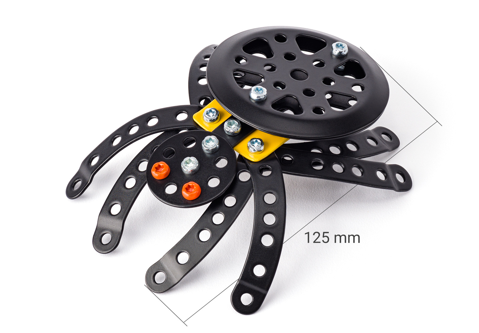 Kovový model Škorpiona z kolekce hmyzáků obsahuje součástky nutné pro sestavení škorpiona. V balení najdete podrobný návod, Merkur sadu nářadí a unikátní Merkur díly. Merkur díly jsou univerzální a tak vás neomezí v jakékoli modifikaci a nápadu. Stavebnici tak můžete sestavit podle přiloženého návodu nebo čistě podle svých představ. Se sestavenými modely si lze hrát, jsou velmi odolné. Podporuje a rozvíjí manuálních schopnosti, logické myšlení, soustředění. Rozměr balení: 18x13,5x5cm cm.Rozměr výrobku: 15x10x9cm cm.Počet dílků:93. Nevhodné pro děti do tří let. Doporučený věk: 5+