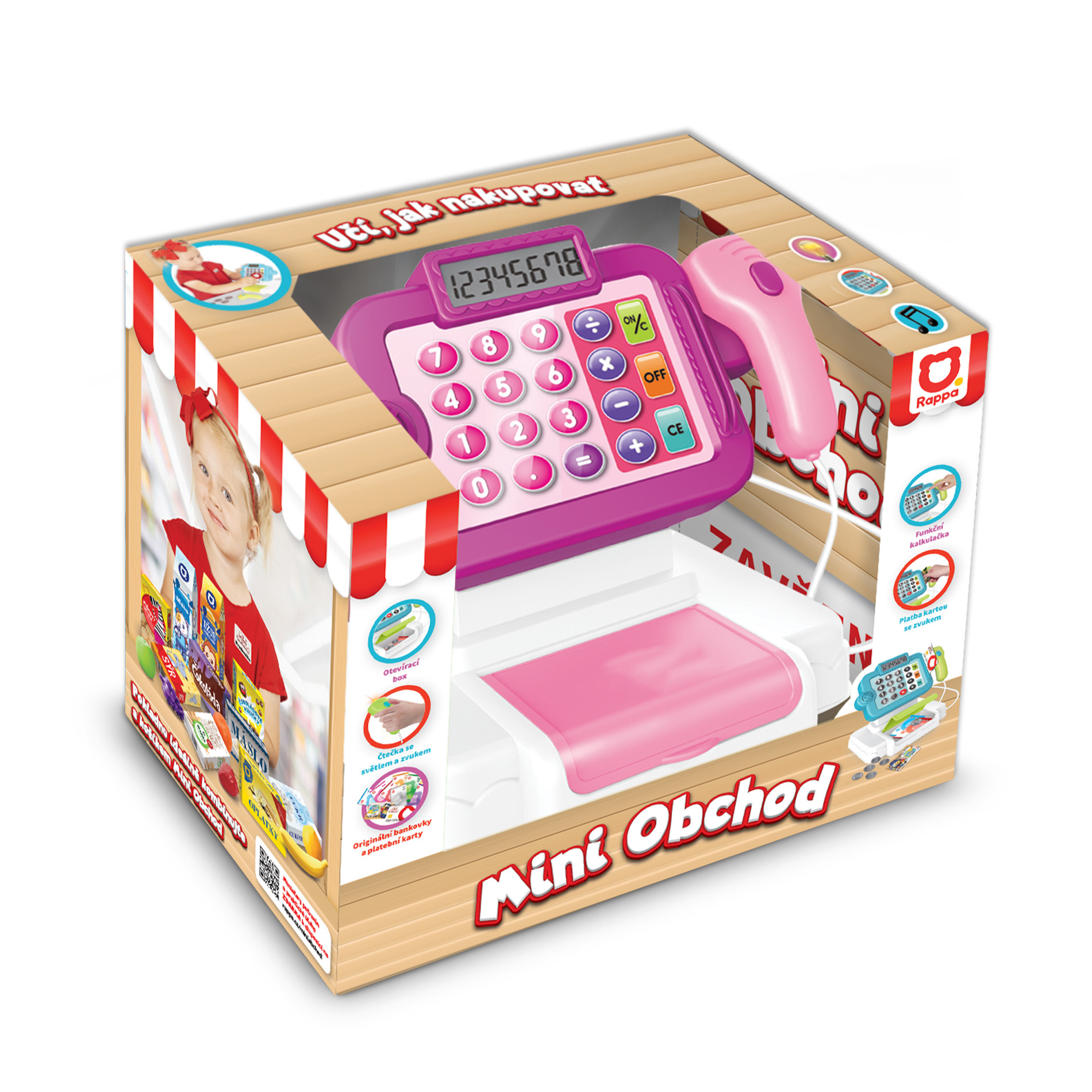 Hra na obchod patří k oblíbeným dětským kratochvílím, a tak výběrem tohoto doplňku jistě nesáhnete vedle! Pořiďte svému malému prodavači či prodavačce vlastní elektronickou pokladnu. Dětská pokladna pomůže dětem s počítáním i lehkou motorikou. Přináší spoustu zábavy a zároveň podporuje rozvoj dětské představivosti. S naší digitální pokladnou si vaše děti užijí spoustu legrace. Budou si moci otevřít vlastní obchod a na pokladně věci prodávat. Pokladna obsahuje čtečku se světlem a zvukem, makety bankovek a mincí v počtu 16 papírových bankovek a 6 plastových mincí, 2 makety platebních karet a hlavně funkční kalkulačku. Navíc uvnitř balení najdeš A4 list s úkoly a ceníkem. Zároveň lze z obalu vystřihnout cedulky OTEVŘENO/ZAVŘENO a jmenovky pro malé prodavače (2 ks). Pokladna funguje na 2 ks baterií typu AA, které nejsou součástí balení. Hračka je vhodná pro děti od 3 let. Na speciální podstránce rappa.cz/miniobchod si zákazníci mohou navíc ZDARMA stáhnout další miniatury potravin a vytisknout naučné úkoly o nakupování.