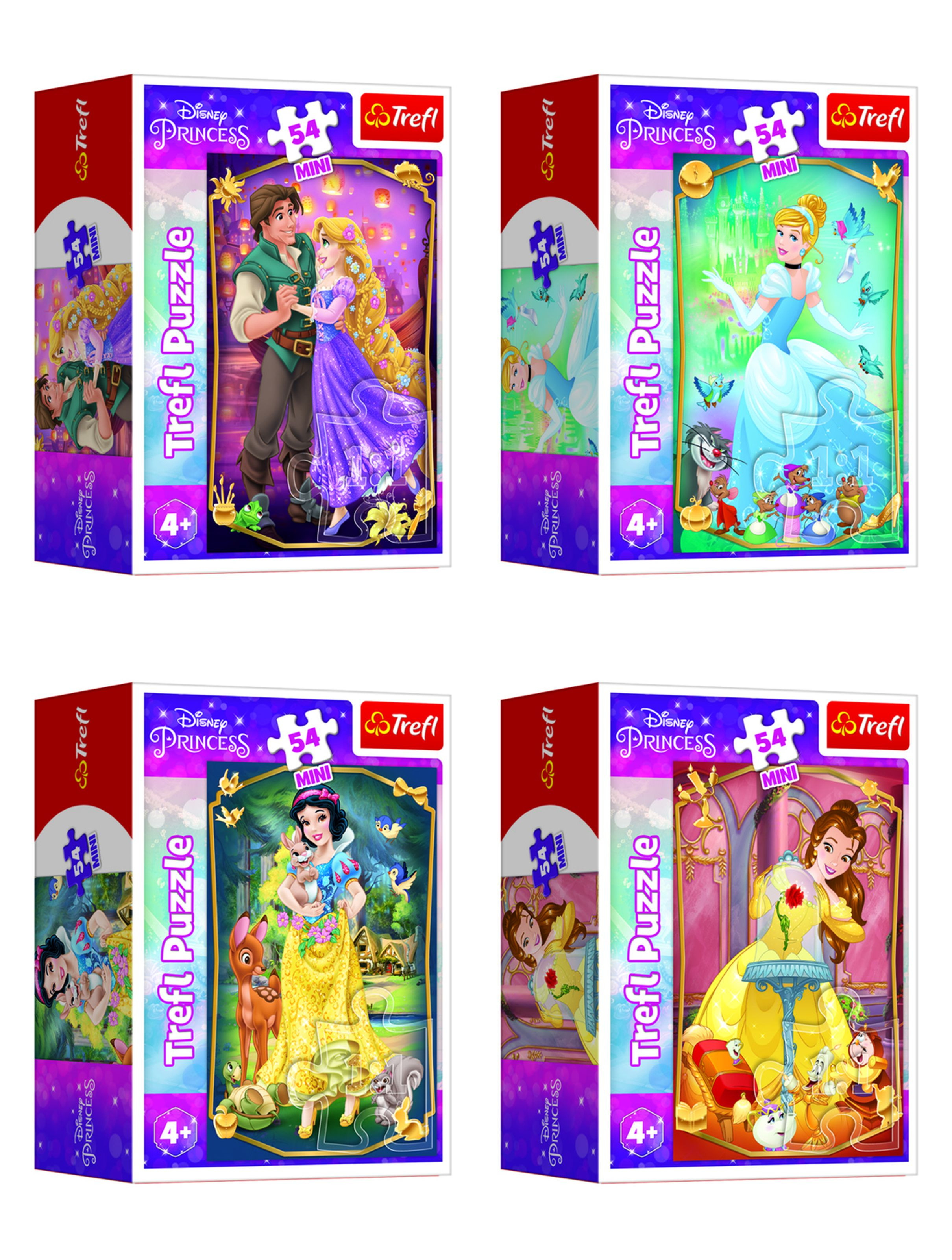 Trefl Minipuzzle Krásné princezny/Disney Princess 54dílků, 4 druhy, v krabičce 6x9x4cm