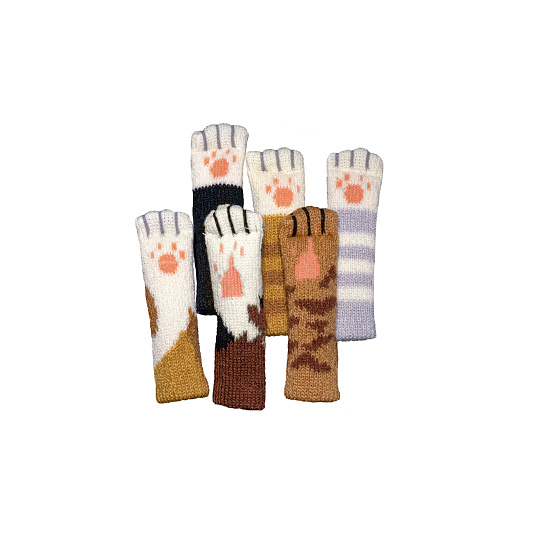 6 pletených návleků na prsty s motivem kočičích tlapek