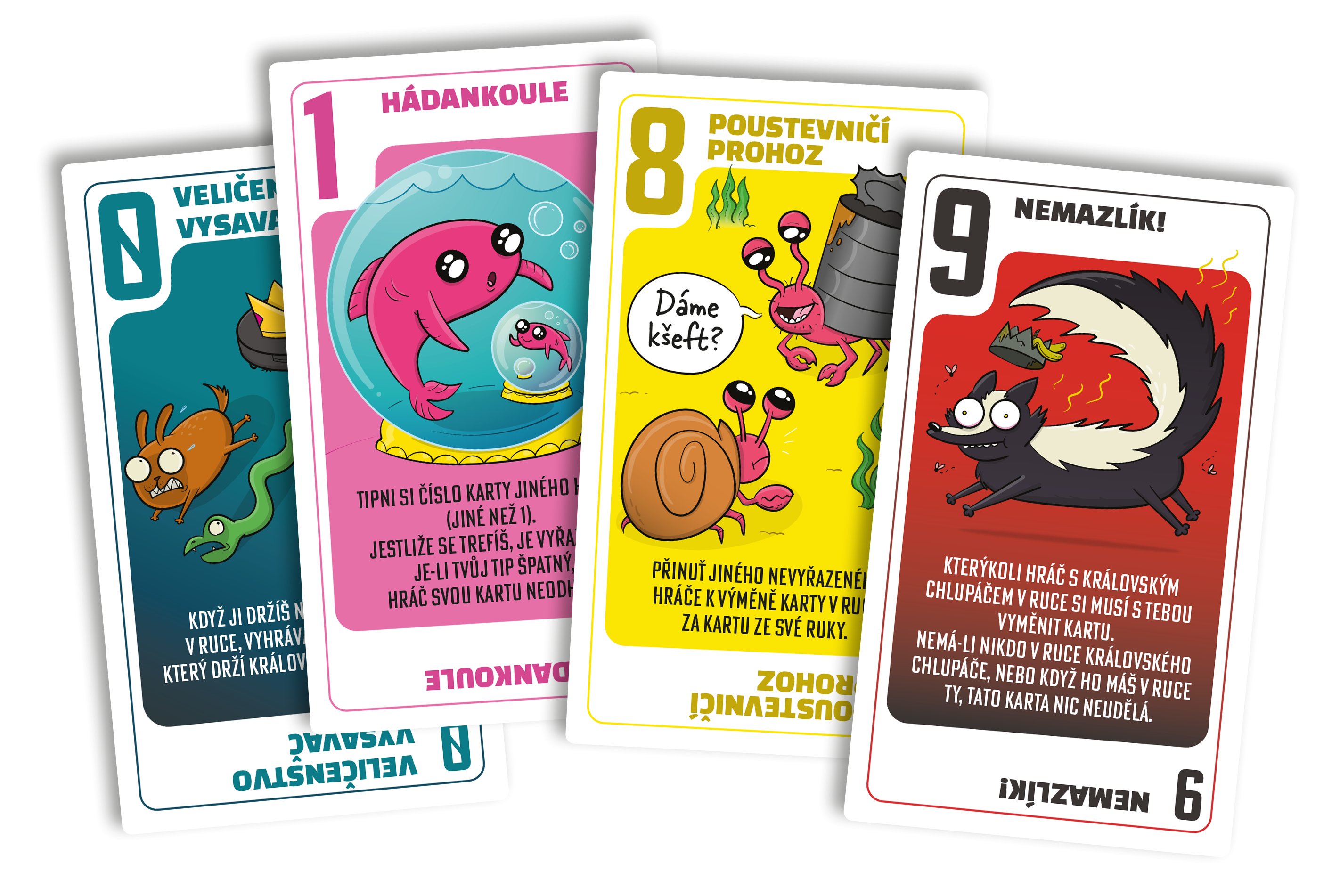 V této hře máte v ruce pouze 1 kartu. Každá karta má na sobě číslo a speciální akci a na konci kola vyhraje ten, kdo drží kartu s nejvyšším číslem!