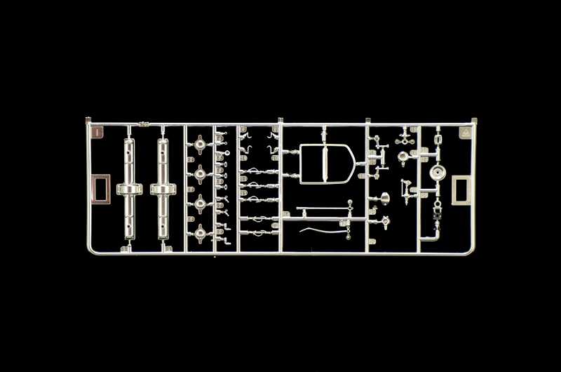 Barevný návod – Řiditelná kola – Realistické zavěšení kol – Velmi detailní motor – Gumové pneumatiky - 320 plastových částí - 30 chromovaných částí – Díly z fotoleptaného kovu – Otevíratelná kapota motoru – Šroubky, hadičky, lano a nylonová síťka