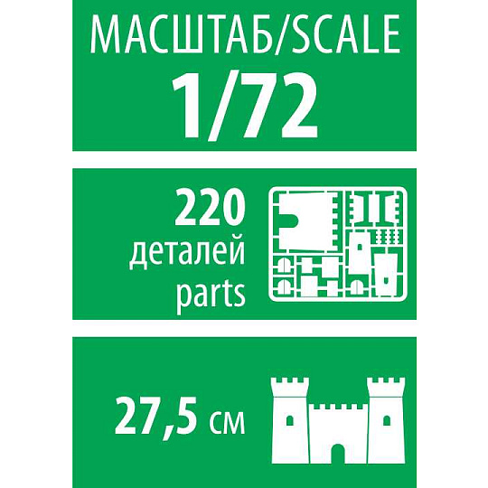 Model diorama ke slepení. Velikost: 1:72; 27,5 cm . Balení obsahuje: 220 dílků ke složení modelu.