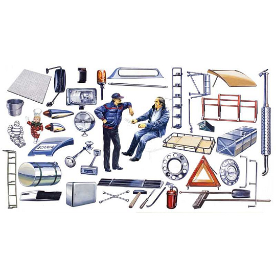 Doplňky k truckům ke slepení. Měřítko: 1:24; obtížnost: 1.