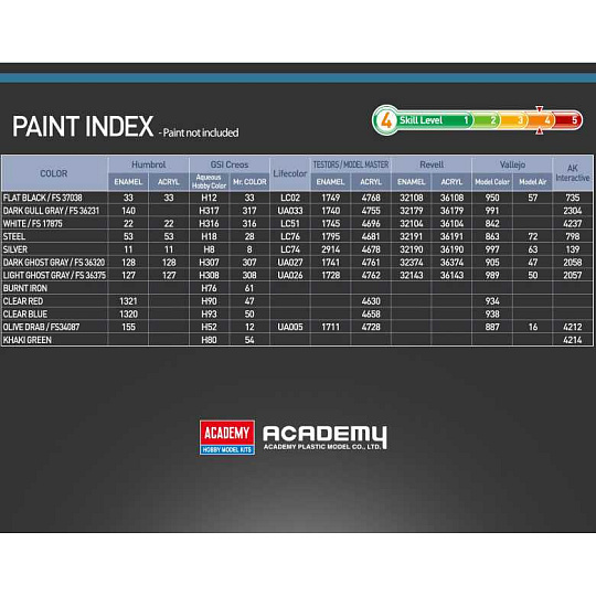 Model letadla ke slepení. Měřítko: 1:48; velikost: 390 mm. Obtížnost: 3. Informace o originálu: SKVĚLÉ OBTISKY PRO 1 VERZI Barevné schéma (Doporučené barvy Italeri): Detaily modelu: Měřítko: 1:48 Délka: 390 mm Obtížnost: 3 Doporučeno pro děti od 14 let. Upozornění: Nebezpečí udušení! Výrobek obsahuje malé části.