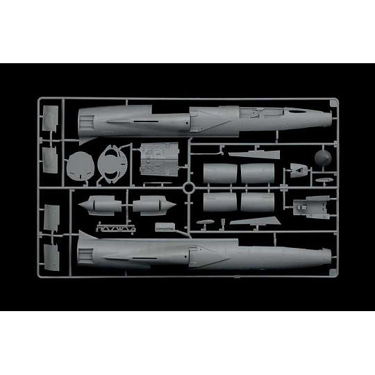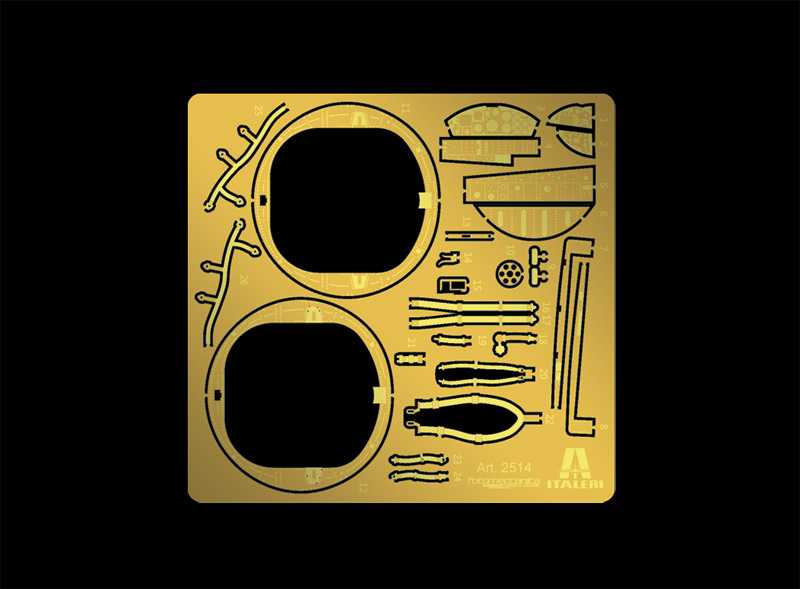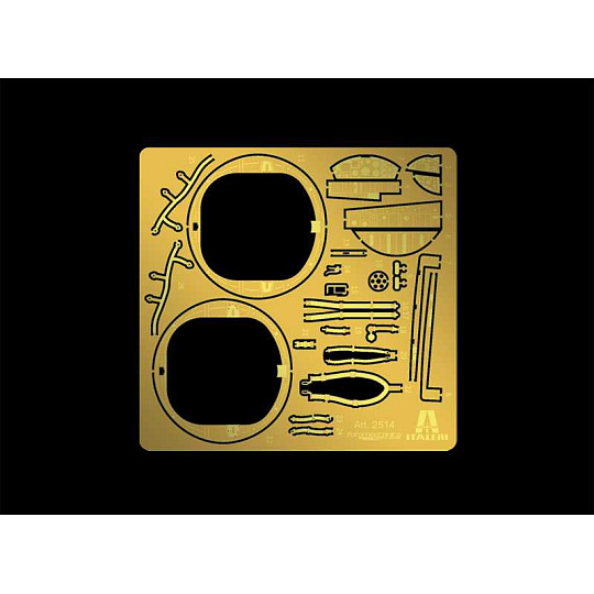 GONDOLA S PRŮZKUMNÝM SYSTÉMEM ORPHEUS ITALSKÉHO LETECTVA – VYPOUKLÝ KRYT PRŮZKUMNÉHO FOTOGRAFICKÉHO SYSTÉMU - 2 VÝMETNICE KOVOVÝCH PROUŽKŮ ALE 40 – DETAILNĚ TVAROVANÉ SPOJE PANELŮ A NÝTOVÁNÍ PLÁŠTĚ – DETAILNĚ ZPRACOVANÝ MOTOR, PILOTNÍ KABINA A ŠACHTA S AVIONIKOU – DETAILNĚ ZPRACOVANÁ DĚLOVÁ ŠACHTA S KOMPLETNÍM MECHANISMEM ROTAČNÍHO KANÓNU M-61 VULCAN – OTEVŘENÉ NEBO SKLOPENÉ VZDUCHOVÉ BRZDY – DÍLY Z FOTOLEPTANÉHO KOVU - 325 DÍLŮ - 2 OBROVSKÉ ARCHY S OBTISKY PRO 8 VERZÍ – NÁVOD NA SESTAVENÍ I S BAREVNÝMI SCHÉMATY