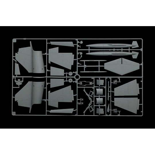 Model letadla ke slepení. Velikost: 1:32; 52 cm. Balení obsahuje polepy pro 8 verzí modelu.