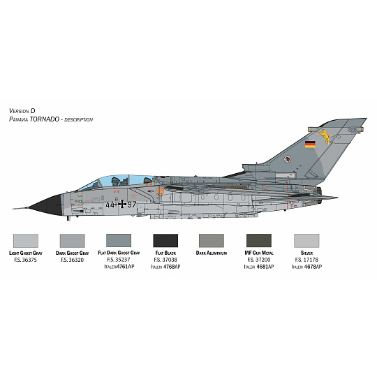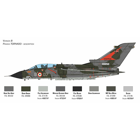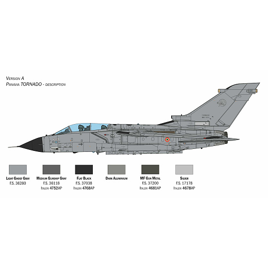 NOVÉ DÍLY - 350 dílů – Detaily z fotoleptaného kovu – Odnímatelný motor RB199 s transportním vozíkem – Sklopené nebo vysunuté klapky a sloty – Pohyblivá křidélka - Otevíratelný radom a velmi detailní radary – Otevřené nebo zavřené obraceče tahu - Otevřené nebo sklopené vzduchové brzdy – Gumové pneumatiky – Pohyblivá křídla s měnitelnou geometrií a pylony – Gumové kryty napojení křídel na trup – Barevný návod na sestavení - 2 archy skvělých obtisků pro 3 verze letounu
