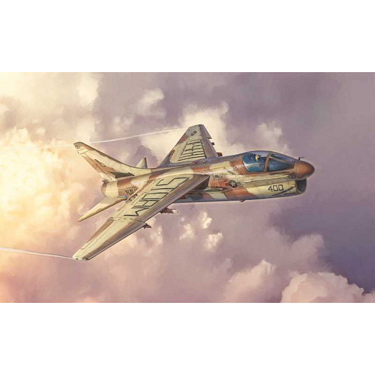 Model letadla ke slepení. Velikost: 1:48; 19,5 cm. Informace o originálu: LTV A-7 Corsair II byl navržen a povolán do služby v první polovině 60. let na základě speciálního požadavku amerického námořnictva na vytvoření nového lehkého útočného letadla pro použití na letadlových lodích, který by dokázal nahradit Douglas A-4 Skyhawk a Do