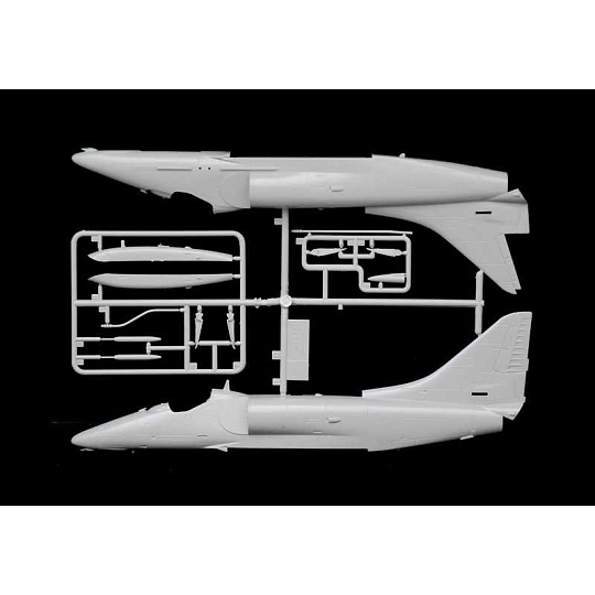 Douglas A-4 Skyhawk byl vyvinut v 50. letech 20. století a jednalo se o jeden z nejslavnějších lehkých útočných letounů v historii letectví. Díky malým a kompaktním rozměrům byl mimořádně obratný a ideální pro použití na letadlových lodích. Rozpoznatelný byl podle spodního delta křídla, dvou malých otvorů sání vzduchu na bocích trupu a použití jediného proudového motoru Pratt & Whitney J52. Byl vyzbrojen dvěma 20mm kanóny a díky pylonům pod křídly a trupem mohl nést širokou škálu střel typu vzduch-vzduch, vzduch-země a také raket a pum. Díky svým operačním schopnostem dosáhl A-4 dobrých obchodních úspěchů a byl přijat do arzenálu několika leteckých sil po celém světě. Kromě Spojených států jej používala mimo jiné Austrálie, Nový Zéland, Kuvajt a Izrael.