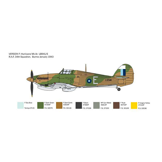 Model letadla ke slepení. Měřítko: 1:48; velikost: 204 mm; počet dílků: 127; obtížnost: 3. Informace o modelu: Hawker Hurricane byl britský jednomístný stíhací letoun sloužící v RAF a v letectvech dalších spojeneckých armád během druhé světové války. Hurricany spolu se Spitfiry tvořily základ britského stíhacího letectva během bitvy o