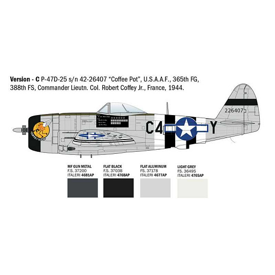 Stíhačka Republic P-47D Thunderbolt bezpochyby hraje významnou roli v historii vojenského letectví. Tento jednomístný americký dolnoplošný stíhací bombardér se vyznačoval výkonným radiálním motorem Pratt & Whitney R-2800 o výkonu přes 2000 koní, který mu umožňoval dosahovat pozoruhodných rychlostí, zejména ve větších výškách, a nabízet mimořádnou operační flexibilitu. P-47 byl účinný jak jako stíhací letoun, který poskytoval doprovod bombardérům, tak jako smrtící letoun pro pozemní podporu a útočné mise. Jeho drak byl mimořádně robustní a byl silně vyzbrojen osmi kulomety Browning M2 ráže 12,7 mm. Navíc mohl být vybaven pumami a raketami, které zvyšovaly jeho útočné schopnosti. P-47 byl úspěšně nasazován Spojenými státy od roku 1943 na různých operačních scénách.