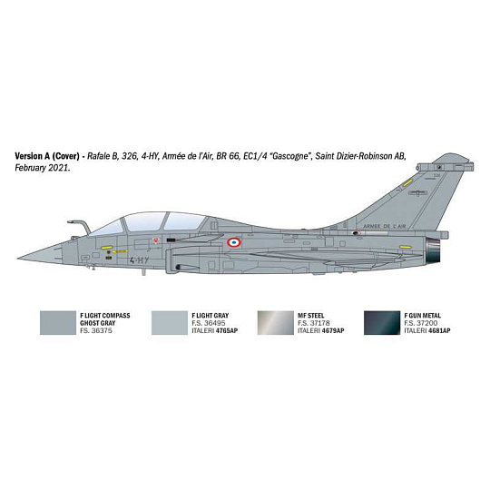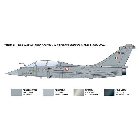 Rafale B je dvoumístná verze francouzského stíhacího letounu s delta křídlem a předními letouny typu canard, vyvinutá společností Dassault Aviation. Mimořádně všestranné letadlo může provádět mise vzdušné nadvlády, pozemního útoku, průzkumu a elektronického boje. Dvojice motorů Snecma M88 s přídavným spalováním poskytuje letounu značný výkon, včetně maximální rychlosti přesahující Mach 1,8 a dobrého provozního doletu. Jeho aerodynamická konfigurace také poskytuje letounu vynikající manévrovatelnost. Rafale B může nést širokou škálu zbraní vhodných pro všechny typy misí, včetně střel vzduch-vzduch a vzduch-země, stejně jako řízené bomby. Jeho primárním uživatelem je francouzské letectvo (Armée de l’Air), ale provozuje ho i letectvo dalších zemí, jako je Chorvatsko a Řecko.