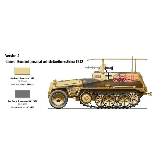 Polopásové vozidlo Sd.Kfz. 250 bylo během druhé světové války hojně využíváno německými mechanizovanými jednotkami. Vycházelo z technického základu dělostřeleckého tahače Sd.Kfz.10 a mělo sloužit jako flexibilní a spolehlivé řešení pro integraci přesunů pěchoty a obrněných jednotek. Bylo vyzbrojeno buď jedním, nebo dvěma 7,92mm kulomety MG34 a mohlo na bojiště dopravit, s vysokou úrovní ochrany, čtyřčlenný pěší oddíl. Jeho operační spolehlivost vedla k vývoji mnoha variant, z nichž jednou byl 250/3 Leichter Funkpanzerwagen (lehké obrněné vozidlo pro rádiové spojení), používané jako nervové centrum zprostředkující rádiové spojení mezi předsunutými jednotkami, dělostřelectvem a leteckou podporou. Pozoruhodnou verzí byl také "Greif", který používal Erwin Rommel v severní Africe jako plně předsunuté velitelské stanoviště, které mohlo být v těsném kontaktu s frontovými jednotkami.