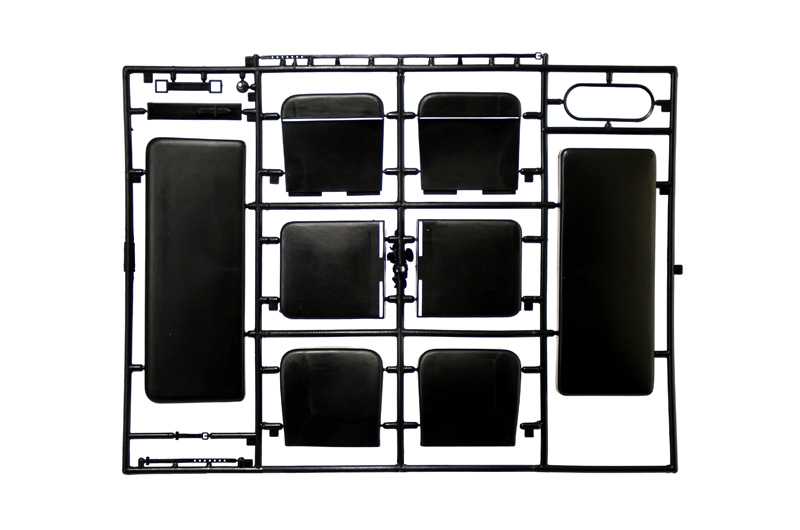 Funkční zavěšení kol – Otevíratelný kryt motoru – Velmi detailní motor – Velmi detailní obtisky – Plátěná střecha a okna – Funkční plátěná střecha – Řiditelná přední náprava – Gumové pneumatiky – Barevný návod