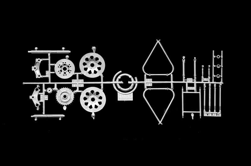 Model motorky ke slepení. Měřítko: 1:9; velikost: 215 mm. Obtížnost: 5.