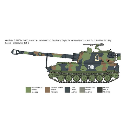 Model tanku ke slepení. Měřítko: 1:35; velikost: 18,9 cm. Obtížnost: 3. Informace o originálu: Samohybné dělo M-109 bylo objednáno na základě konkrétního zadání americké armády, která hledala těžkou houfnici s větší pohyblivostí ve všech typech terénu, než jakou nabízela zastaralá M-44. První kusy M-109 vstoupily d... více