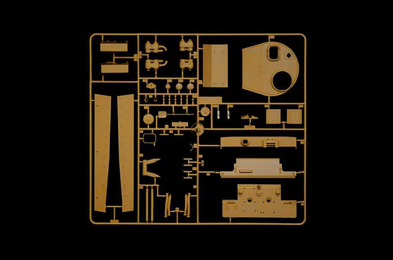Model tanku ke slepení. Velikost: 1:35; 24,1 cm. Obsahuje obtisky pro 4 verze modelu.
