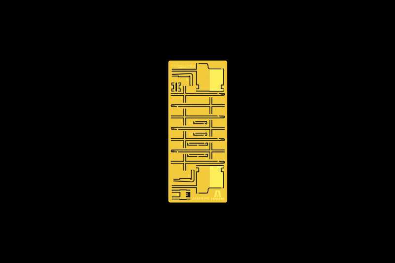 DÍLY Z FOTOLEPTANÉHO KOVU – KOVOVÁ HLAVEŇ DĚLA – PÁSY Z JEDNOTLIVÝCH SPOJŮ A DÍLKŮ – OBTISKY PRO 2 VERZE – BAREVNÝ NÁVOD NA SESTAVENÍ