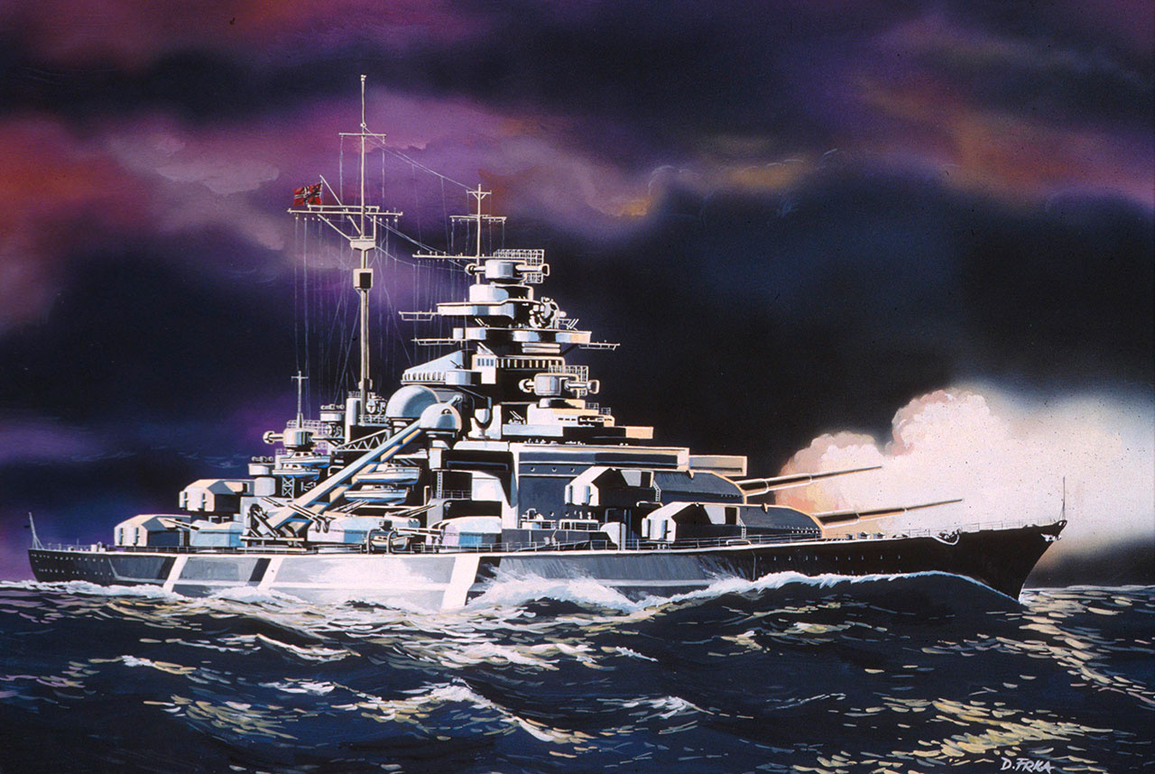 Hned po Tirpitzovi byl Bismarck, vlajková loď německého válečného námořnictva, největším německým bitevním plavidlem. Jeho výtlak tak dosahoval úctyhodných 50 900 tun a posádka čítala 2092 členů. Do služby byl Bismarck uveden 24. srpna 1940 a přístav poprvé opustil 18. května 1941 při operaci „Rheinübung“. Spolu s další německou lodí Prinz Eugen byl však brzy objeven britskými průzkumnými letadly. Při setkání s britským bitevním křižníkem Hood 24. května 1941 byl Bismarck ještě úspěšný a podařilo se mu svého soka potopit. Následovalo však dlouhé pronásledování, při kterém byl Bismarck 26. května 1941 zasažen torpédem z britského bombardéru a zadržen a ostřelován bitevními loděmi King George V a Rodney. 27. května 1941 ho nakonec potopila jeho vlastní posádka 490 km od francouzského pobřeží.