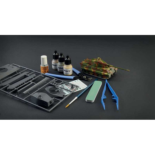 Model tanku ke slepení. Velikost: 1:72. Balení obsahuje barvy, štětec, tekuté lepidlo, obtisky, pinzetu, brousek a kleštičky.