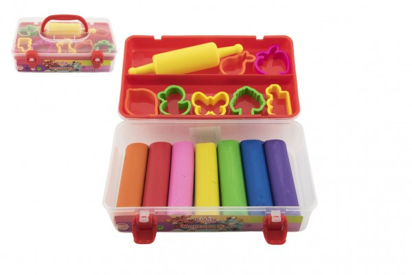 Modelína/Plastelína Nara 550g 7 ks s vykrajovátky 7ks s válečkem v plastovém boxu 20x12x7cm