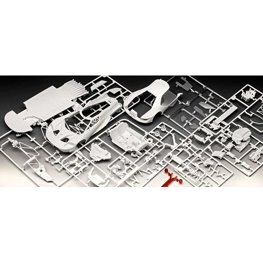 Model auta ke slepení. Velikost: 1:24; 20,4 cm. Balení obsahuje: 88 dílků ke slepení, lepidlo, štětec a barvičky.