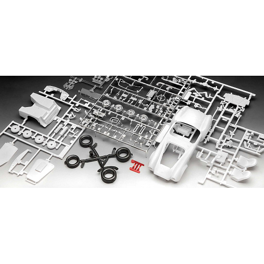 Model auta ke slepení. Velikost: 1:24; 16,8 cm. Balení obsahuje: 94 dílků ke slepení, lepidlo, štětec a barvičky.
