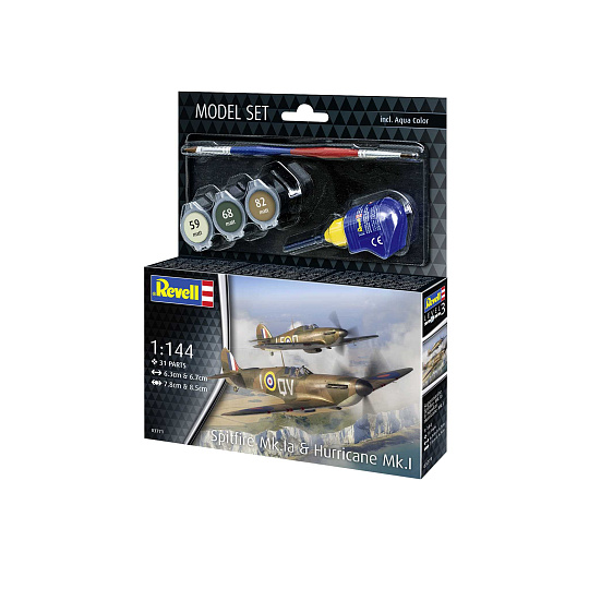 Revell ModelSet letadlo 63771 - Spitfire Mk.Ia & Hurricane Mk.I (1:144)