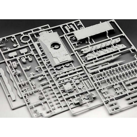 Model tanku ke slepení. Velikost: 1:72; 9,5 cm. Balení obsahuje: 161 dílků ke slepení, lepidlo, štětec a barvičky.