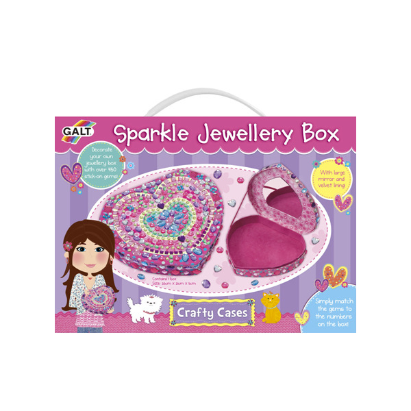 Ozdobte šperkovnici třpytivými nalepovacími drahokamy. Zahrnuje šperkovnici se zrcátkem, více než 450 nalepovacích drahokamů v rozmanitých tvarech a barvách, návod.