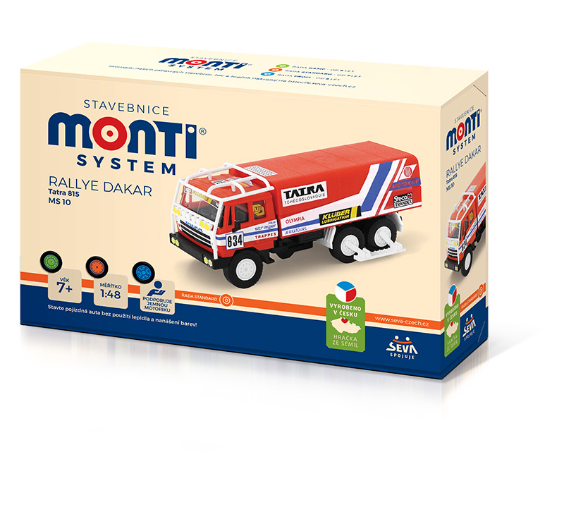 Model Tatra 815 MS 10 Rallye Dakar v měřítku 1:48 je vybavena na kolech stupačkami do písku pro přejezd pouště. Stavebnice patří do skupiny Standard.