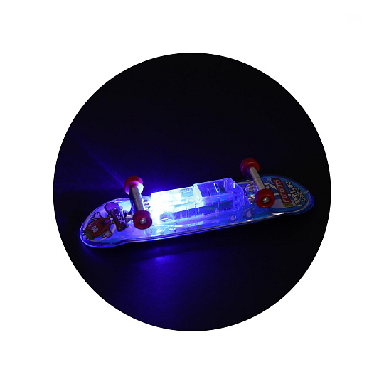 Skateboard prstový plast 9,5cm na baterie se světlem 3 barvy na kartě