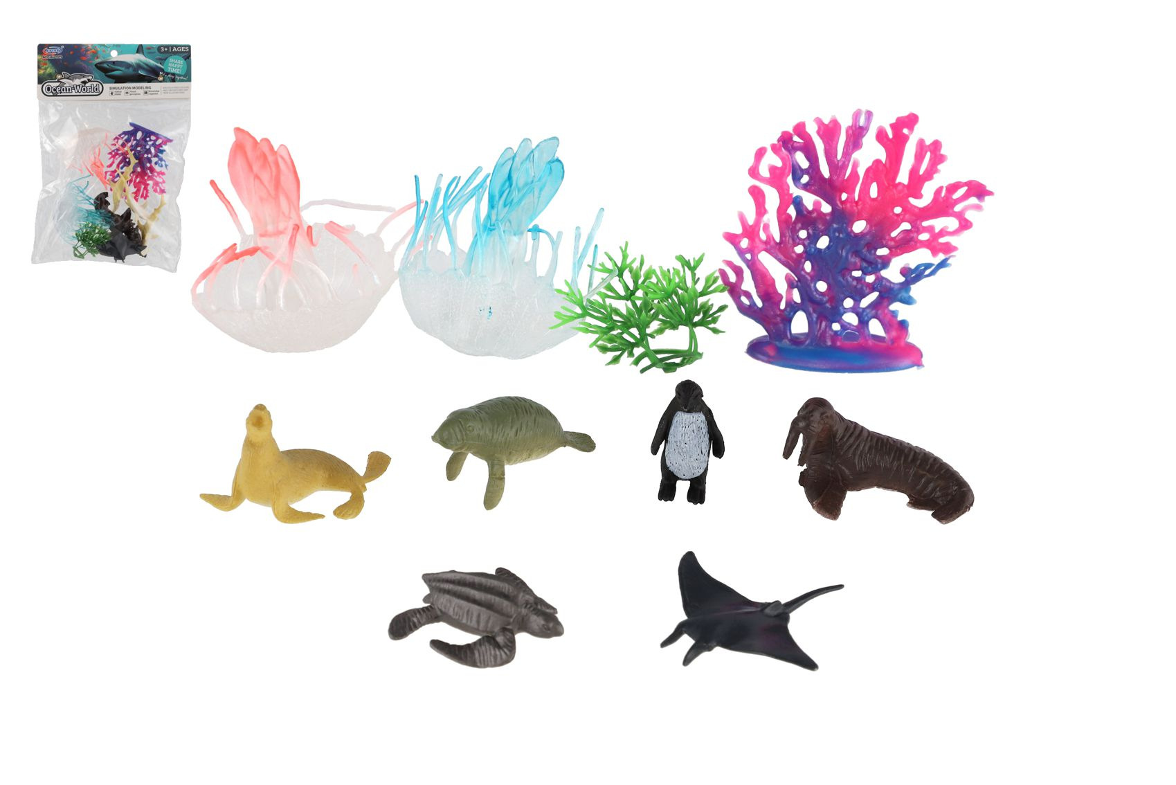Vydejte se pod hladinu oceánu a objevte svět mořských tvorů! Sada 10 plastových zvířátek přináší dětem zábavnou formu poznávání života pod mořem. Různorodé druhy a dvě barevná provedení potěší každého malého milovníka přírody. Velikost sáčku: 16 cm Vhodné pro děti od 3 let