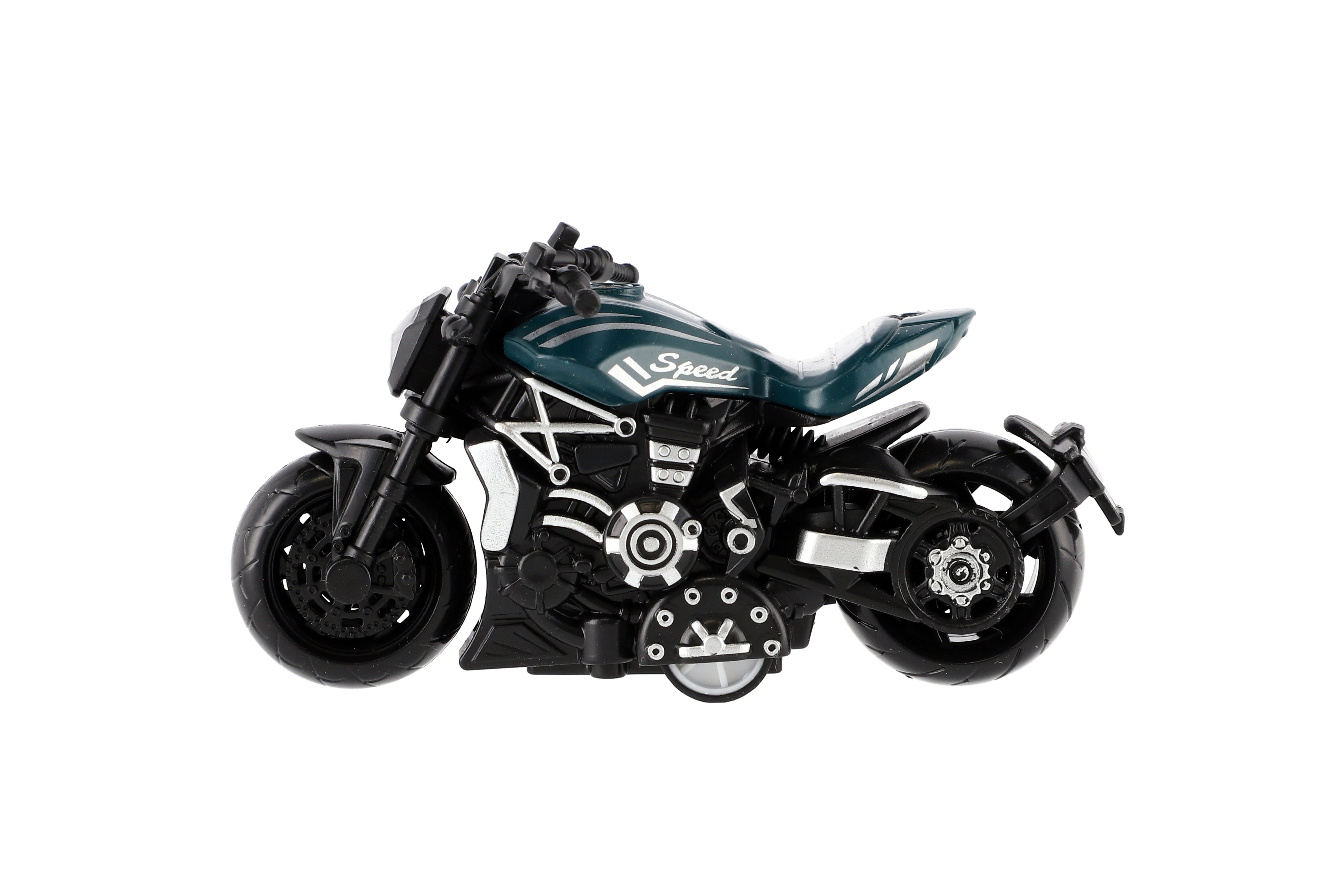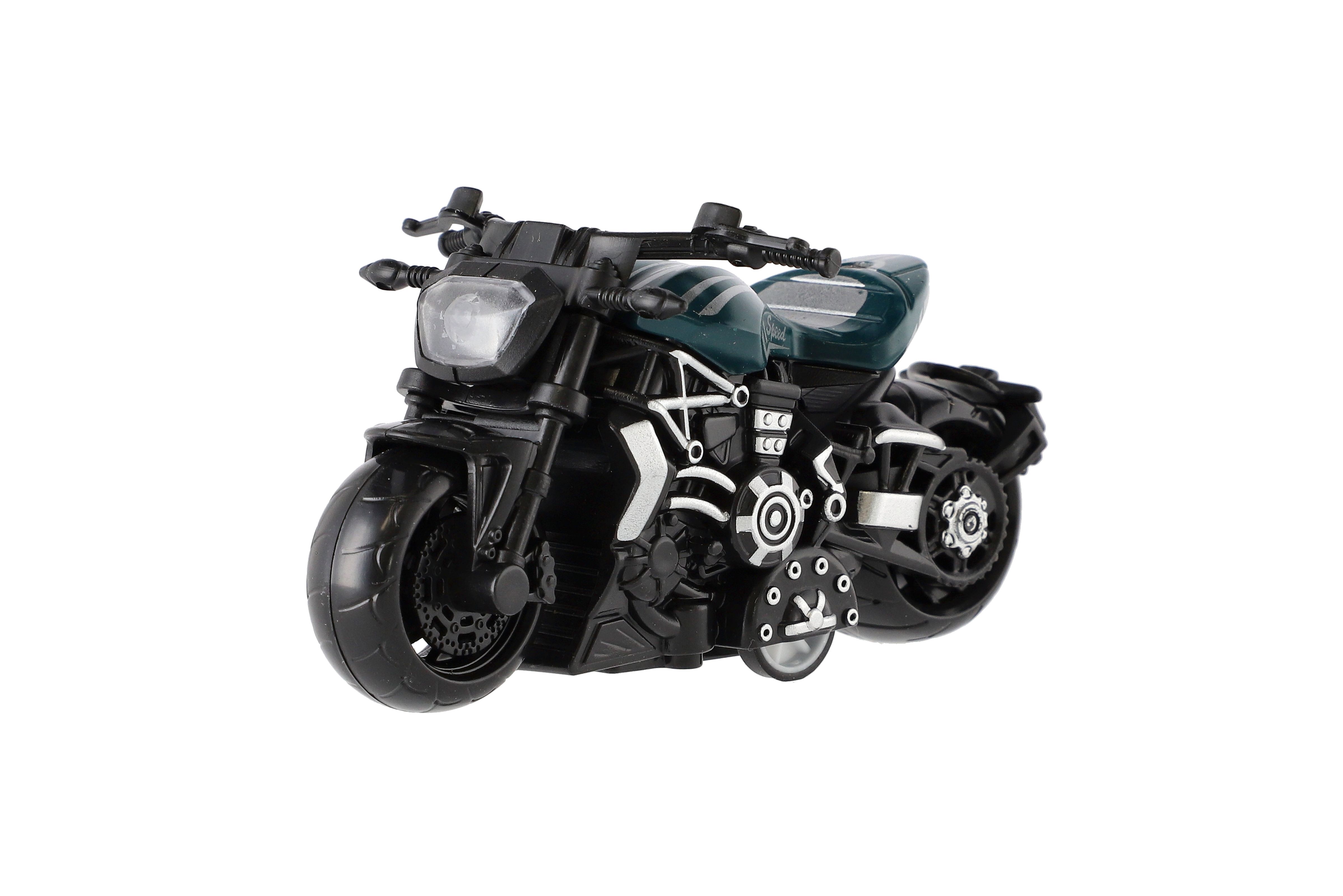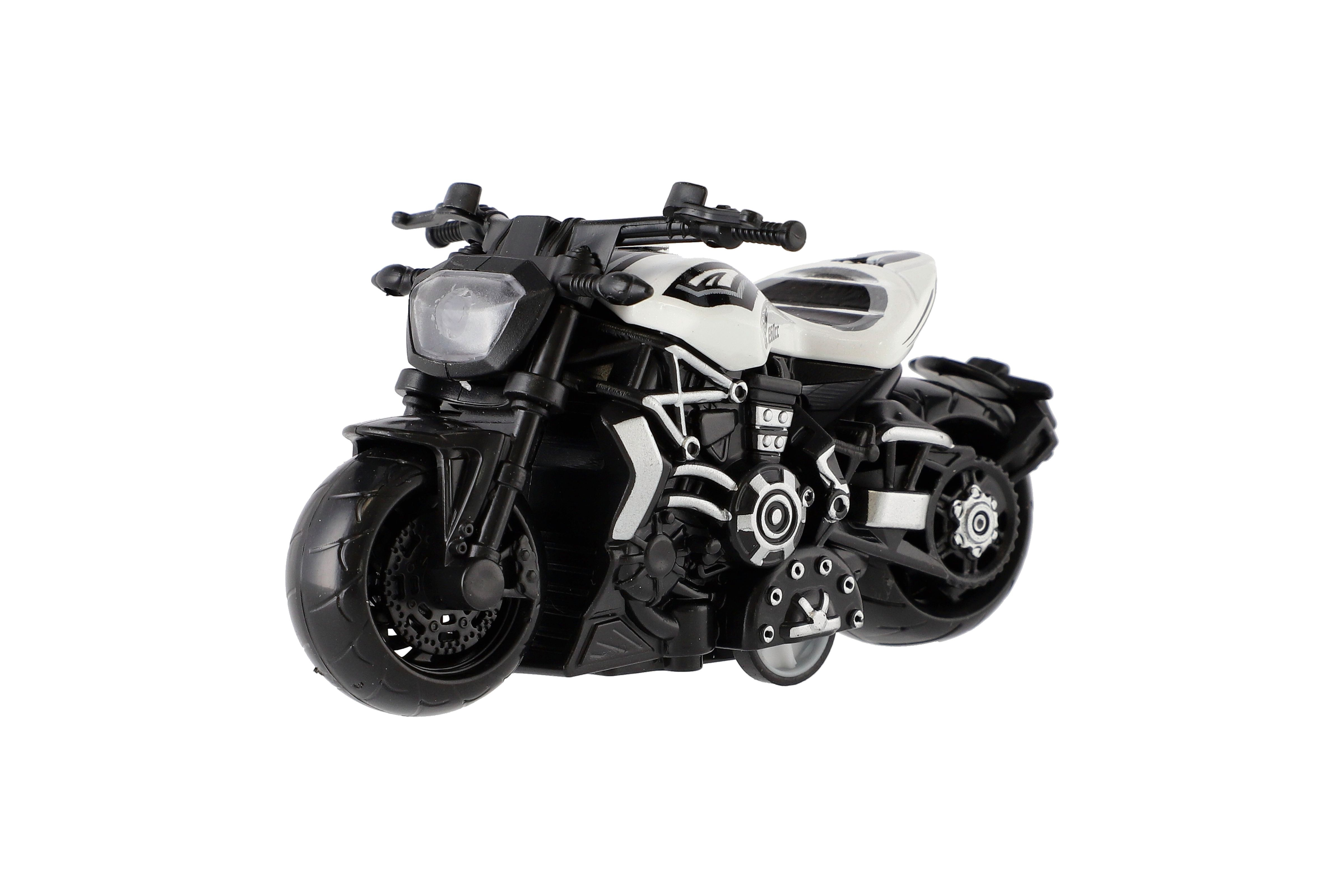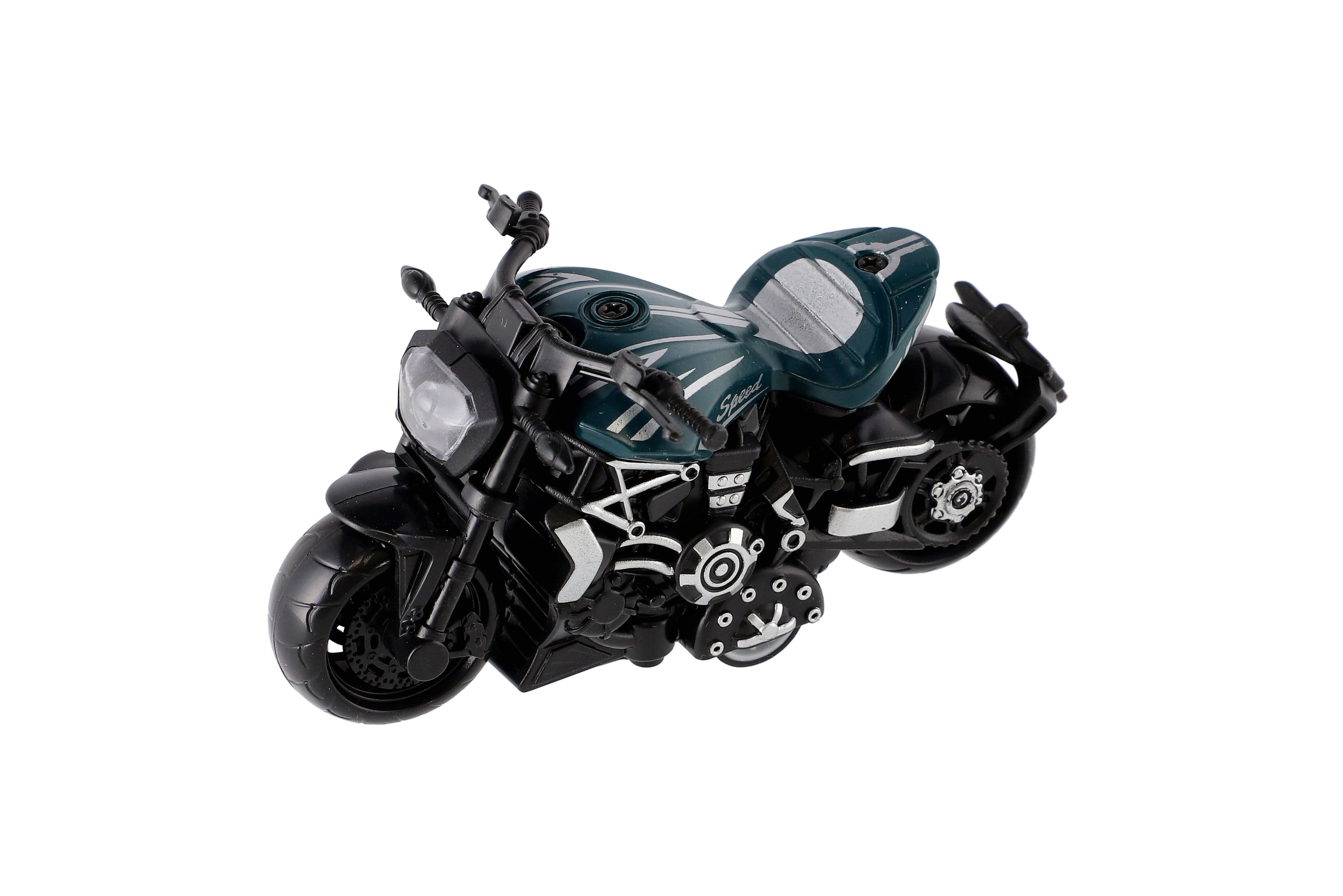 Model krásné motorky s autentickým designem na zpětné natažení. Hračka, kterou ocení každý malý závodník, jezdec, či motorkář. Jezdí na zpětné natažení. Velikost motorky: 10 cm Vhodné pro děti od 3 let