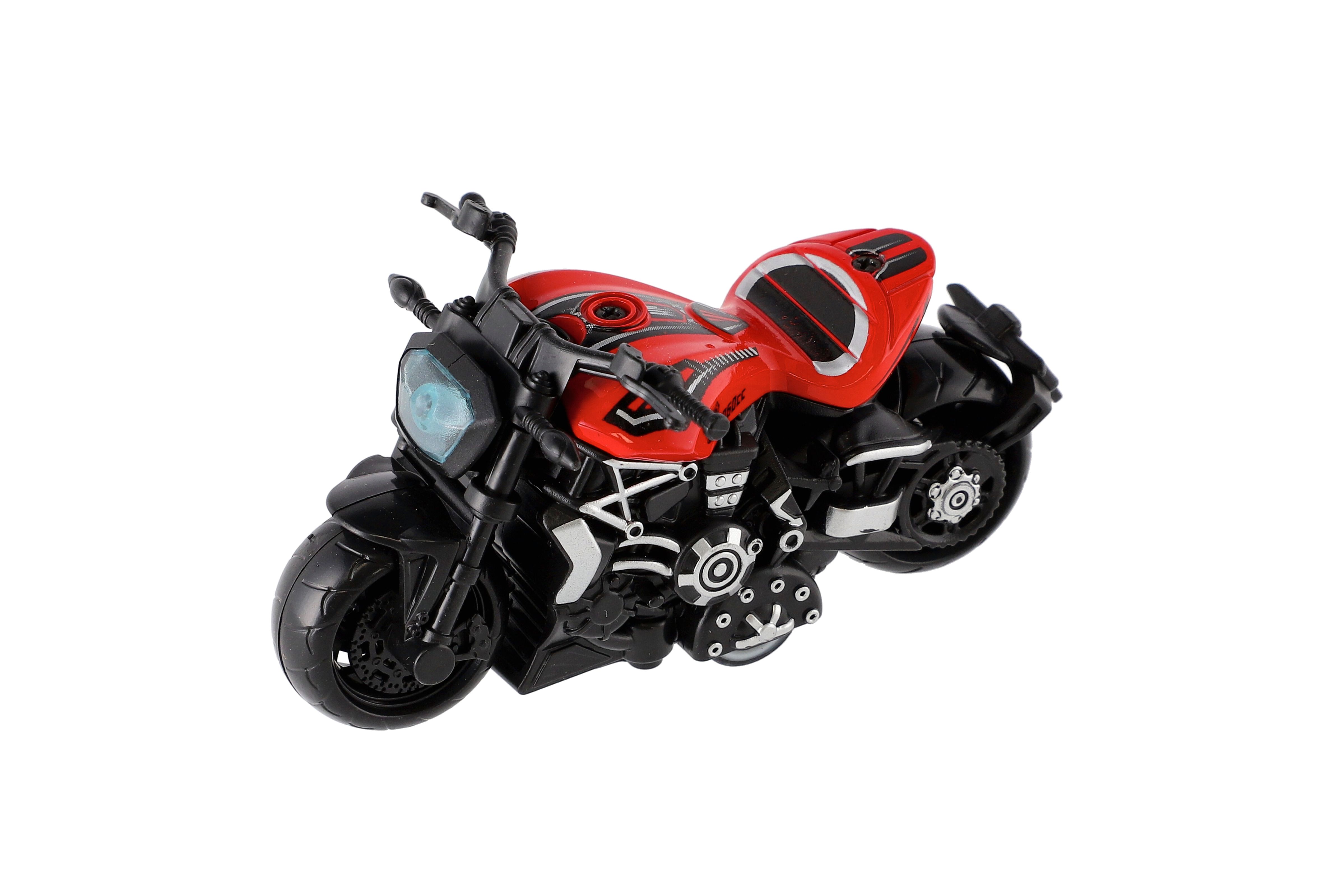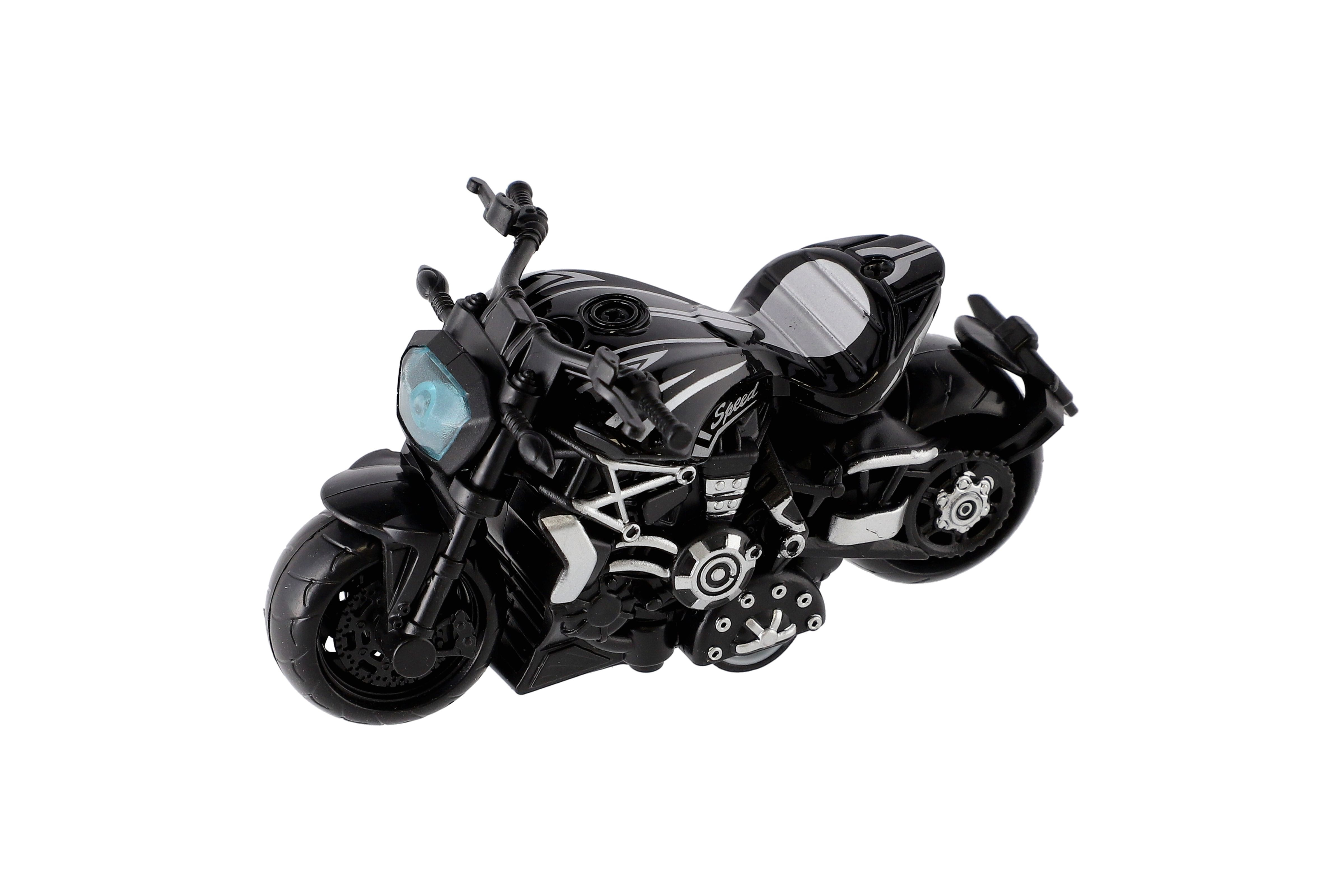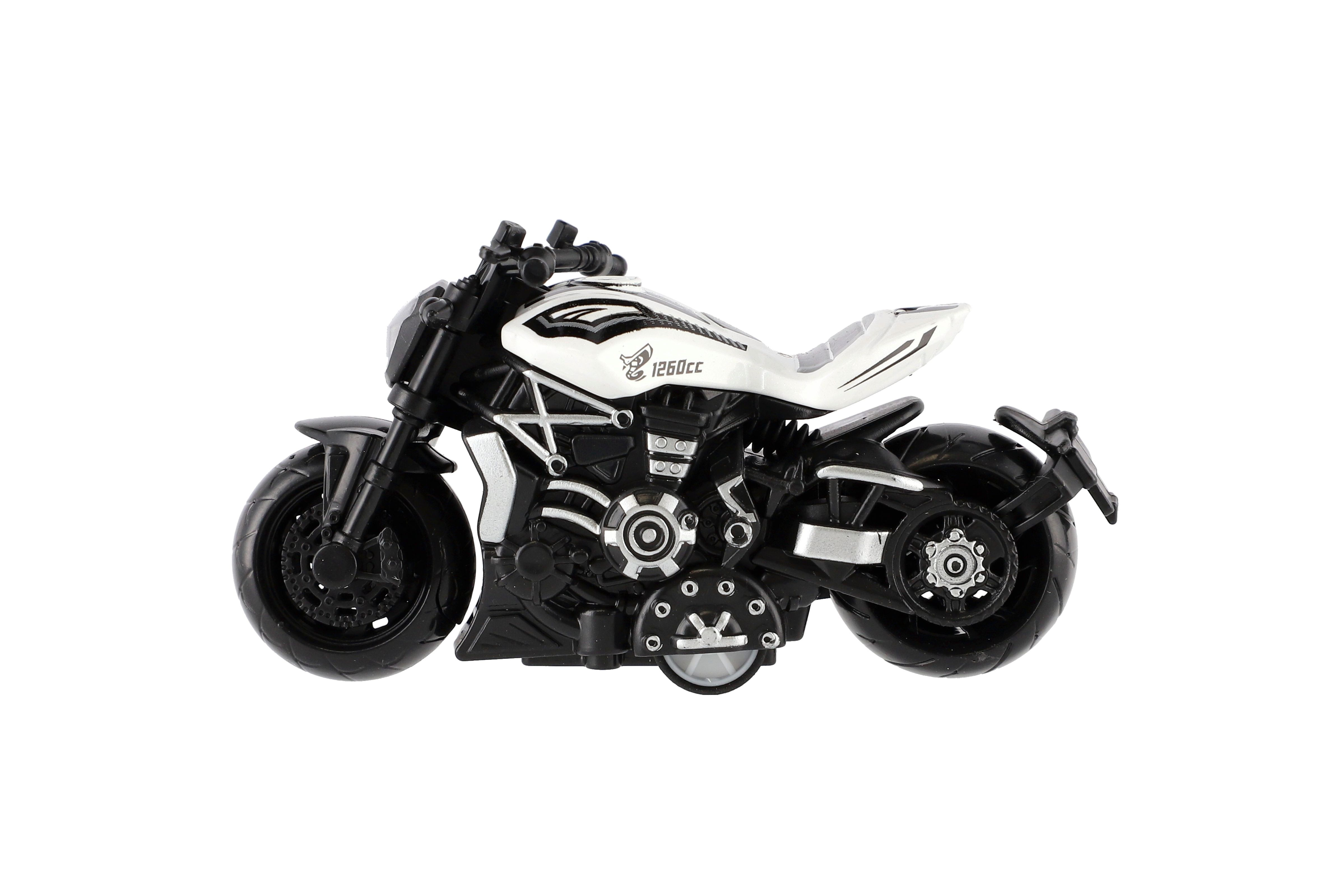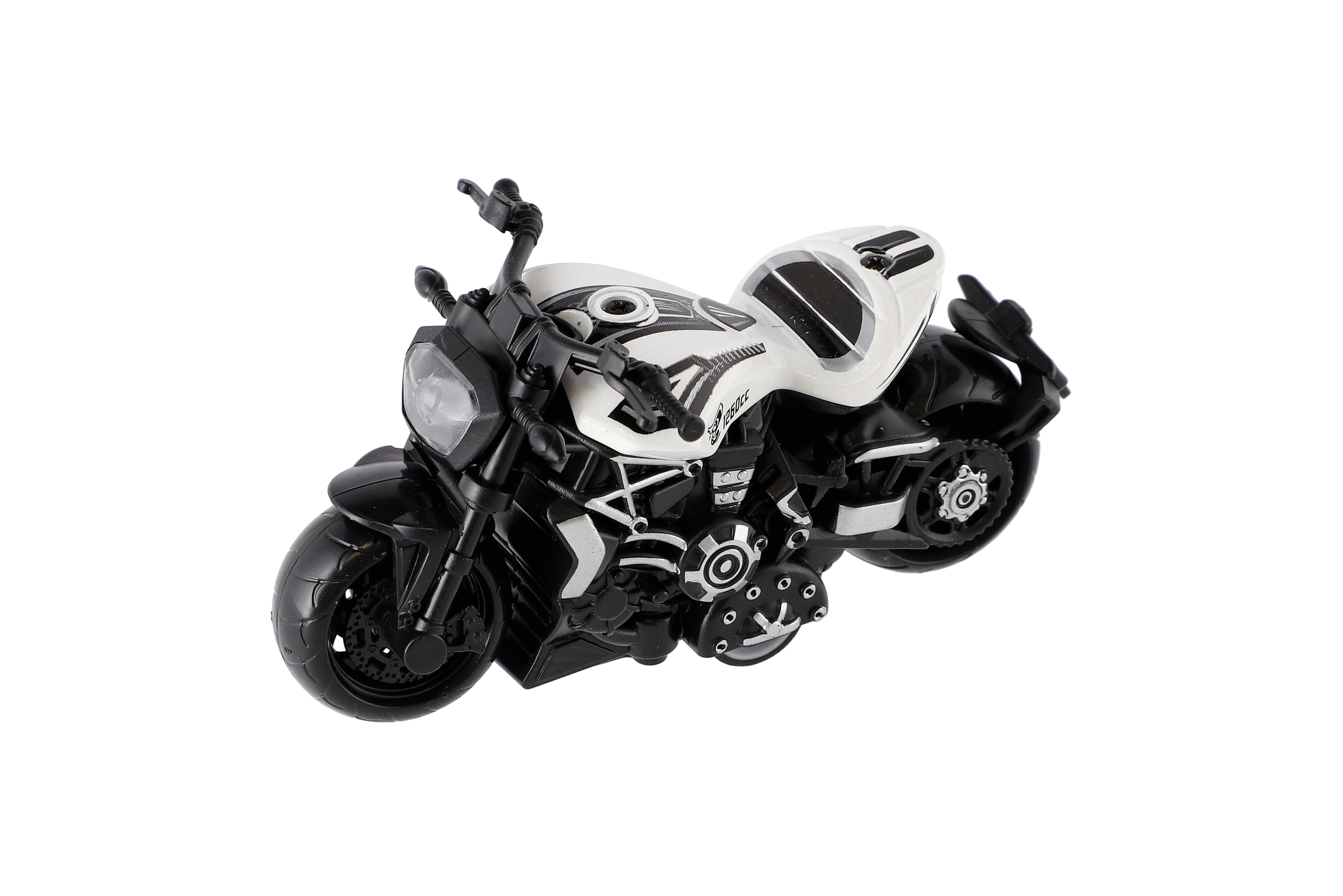 Model krásné motorky s autentickým designem na zpětné natažení. Hračka, kterou ocení každý malý závodník, jezdec, či motorkář. Jezdí na zpětné natažení. Velikost motorky: 10 cm Vhodné pro děti od 3 let