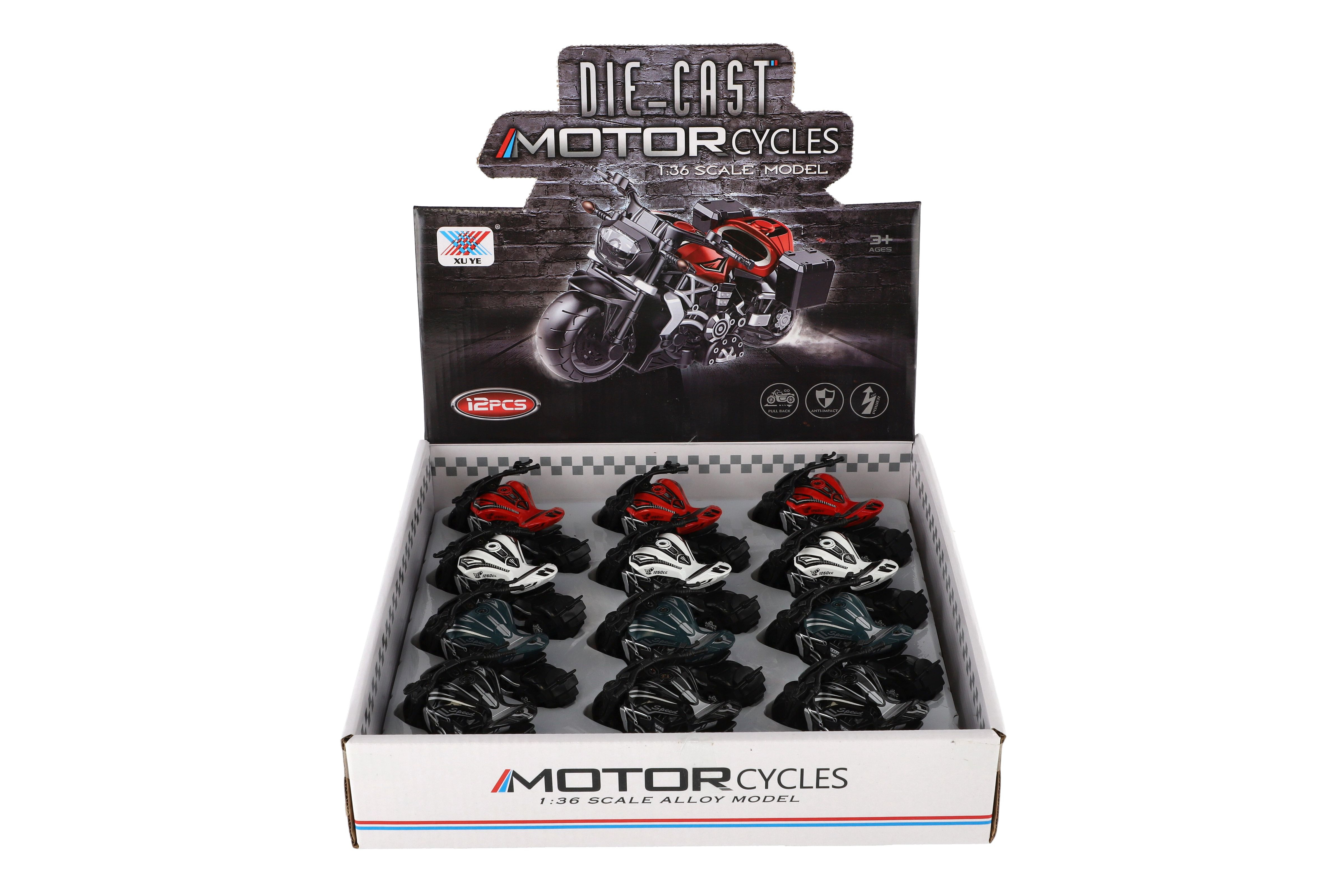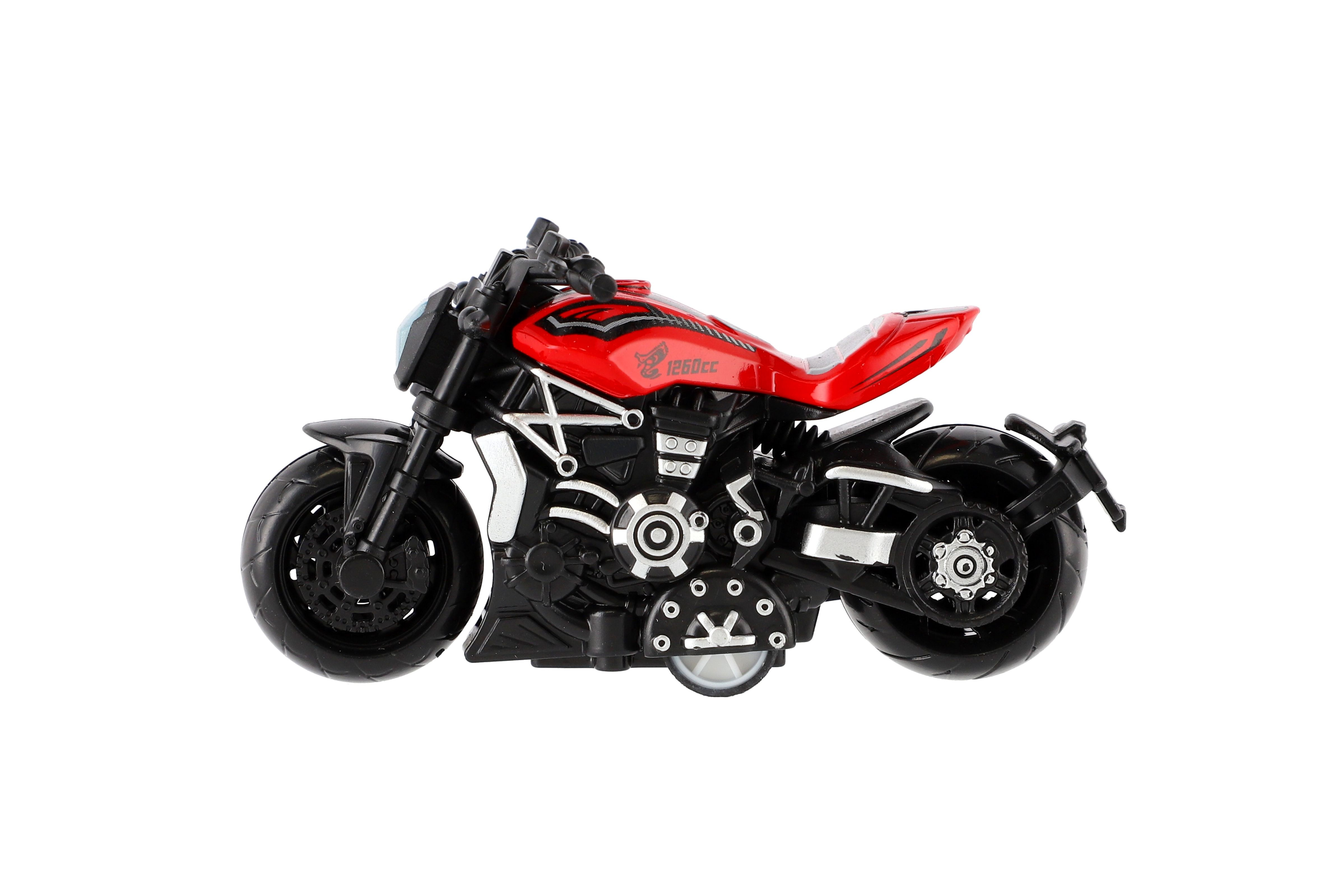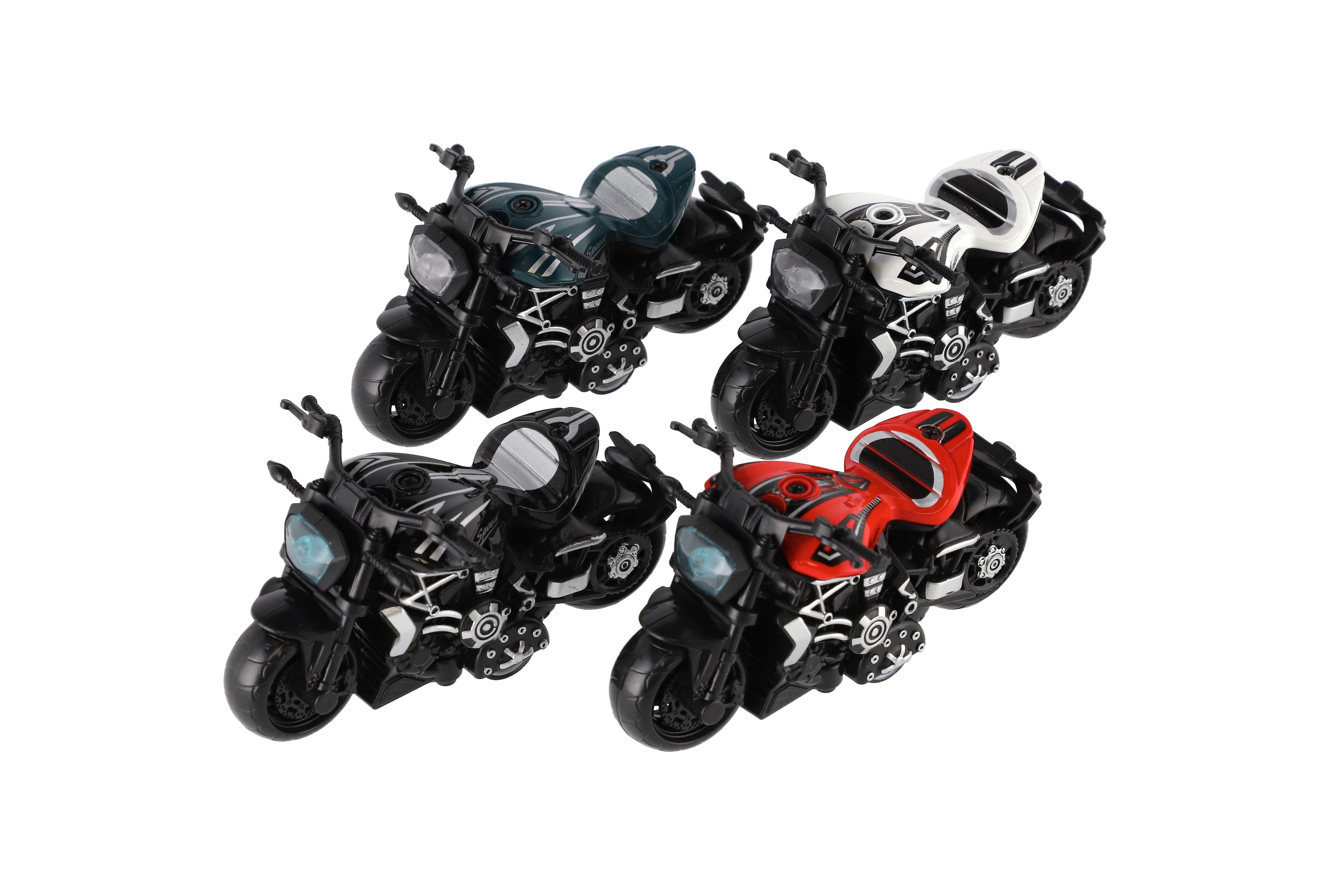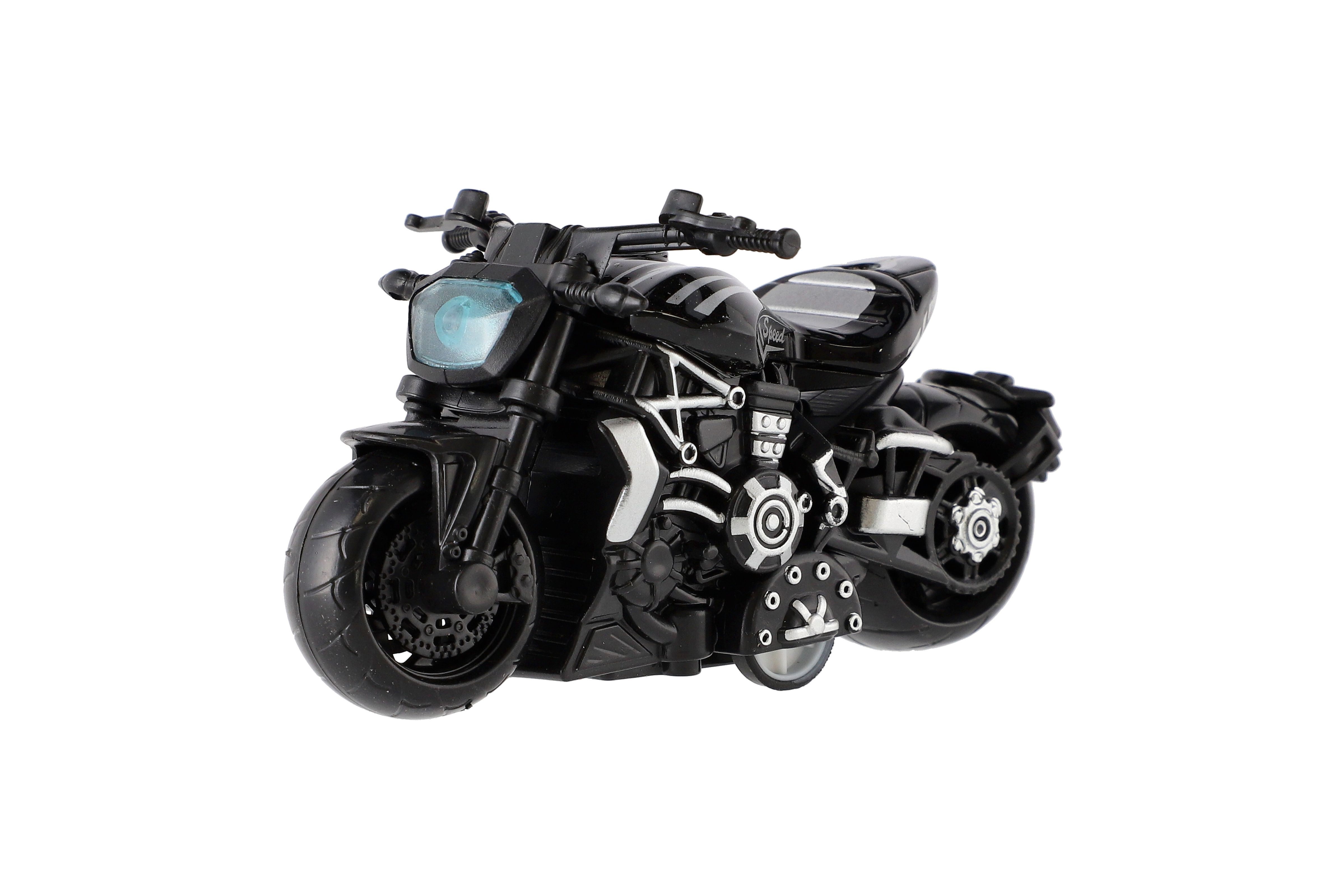 Model krásné motorky s autentickým designem na zpětné natažení. Hračka, kterou ocení každý malý závodník, jezdec, či motorkář. Jezdí na zpětné natažení. Velikost motorky: 10 cm Vhodné pro děti od 3 let
