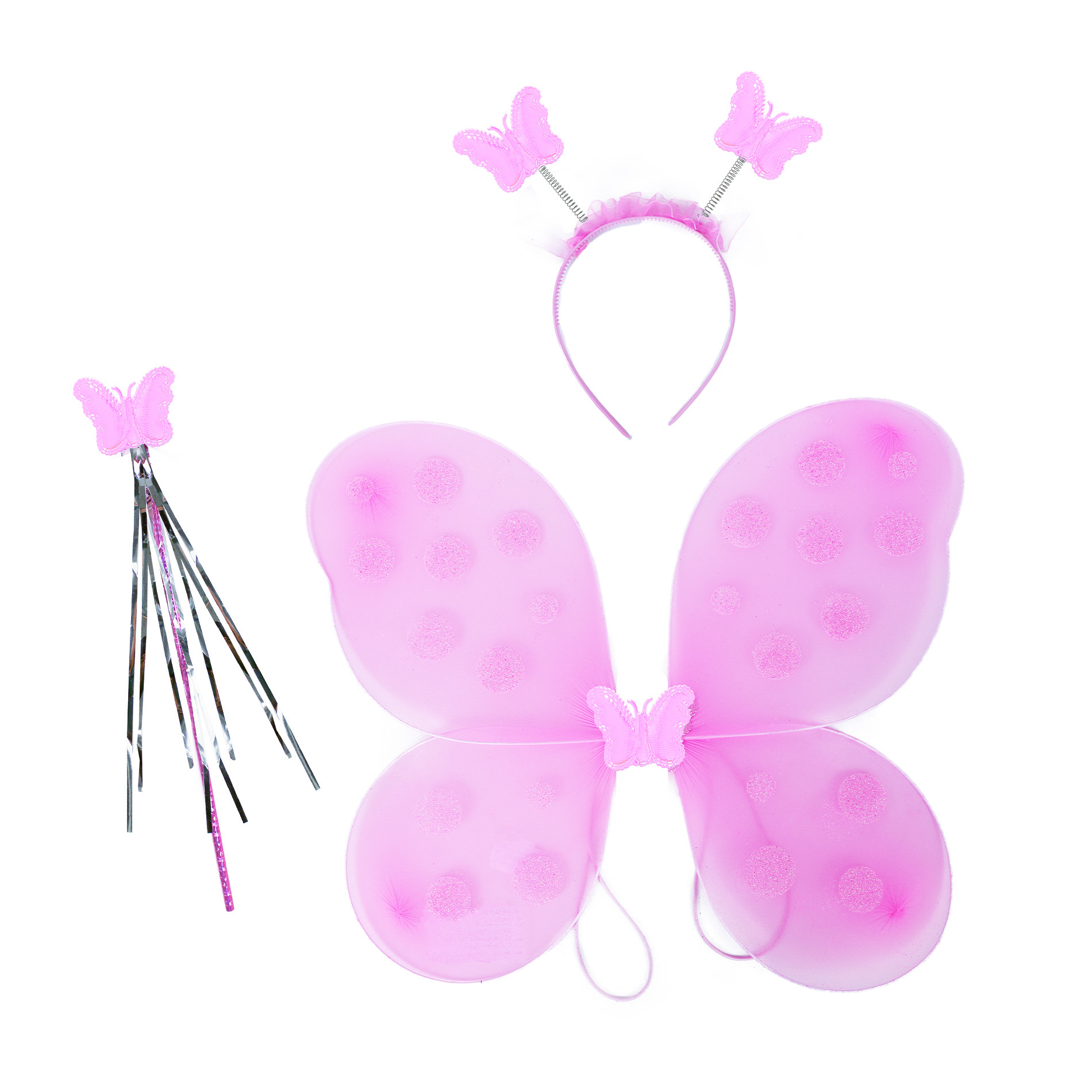 Rappa Motýlí křídla růžová s čelenkou a hůlkou