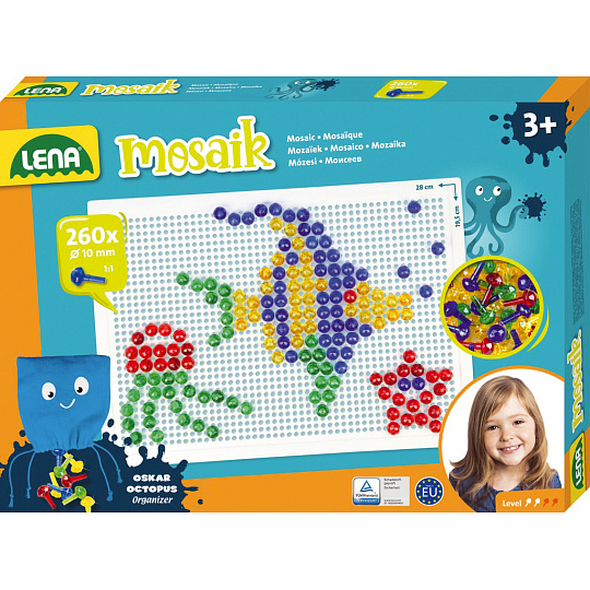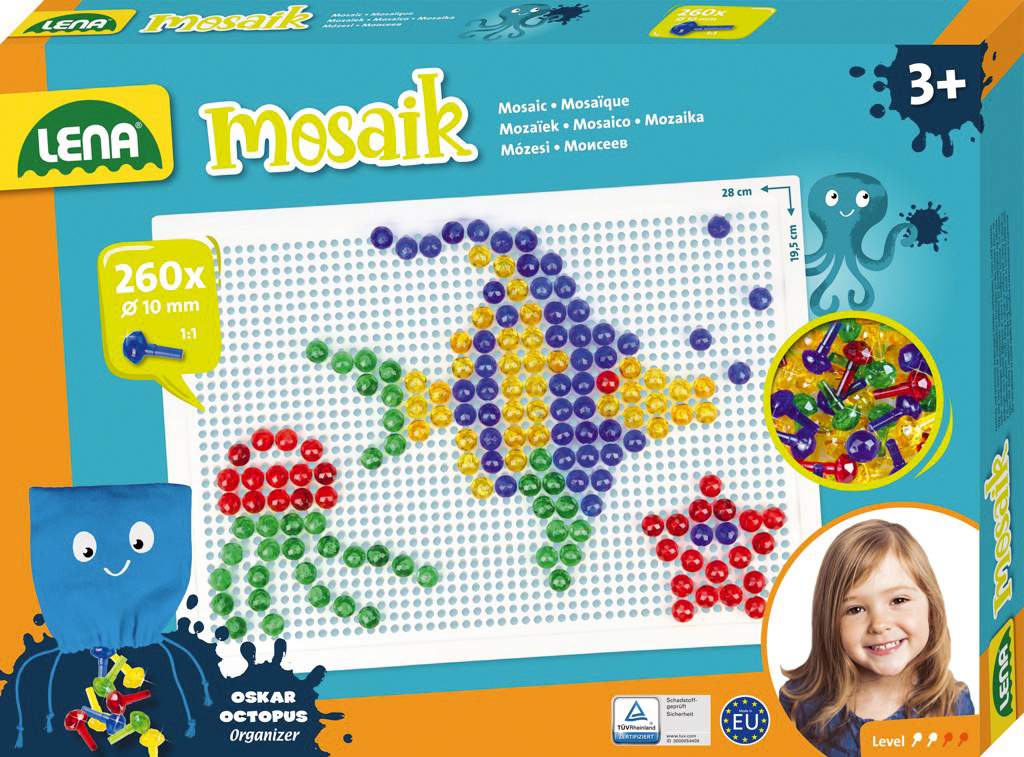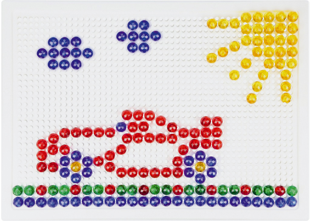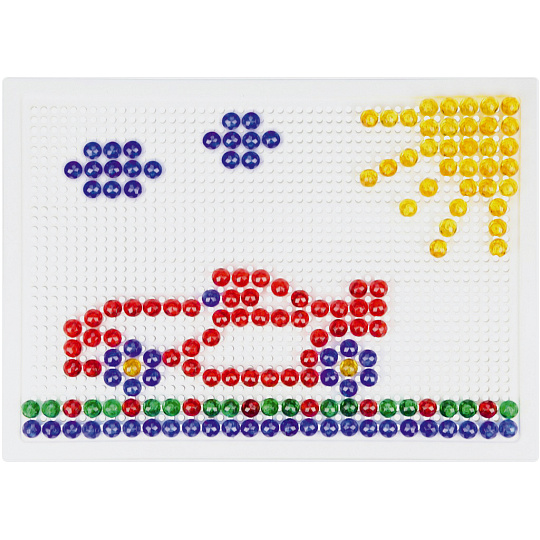 Skládej a vytvářej svůj vlastní svět plný krásných obrázků do mřížkované podložky. Poskládej si akvarium nebo si vytvoř třeba letadlo. Je to jen na tobě. Tvoř znovu a znovu díky 260 kusům plastových hlaviček o průměru 1,5 cm, které na desce umístíš přesně na místo, kam se ti bude hodit! Rozměr krabice: 33 x 24 x 3,5 cm Vhodné pro děti od 3 let
