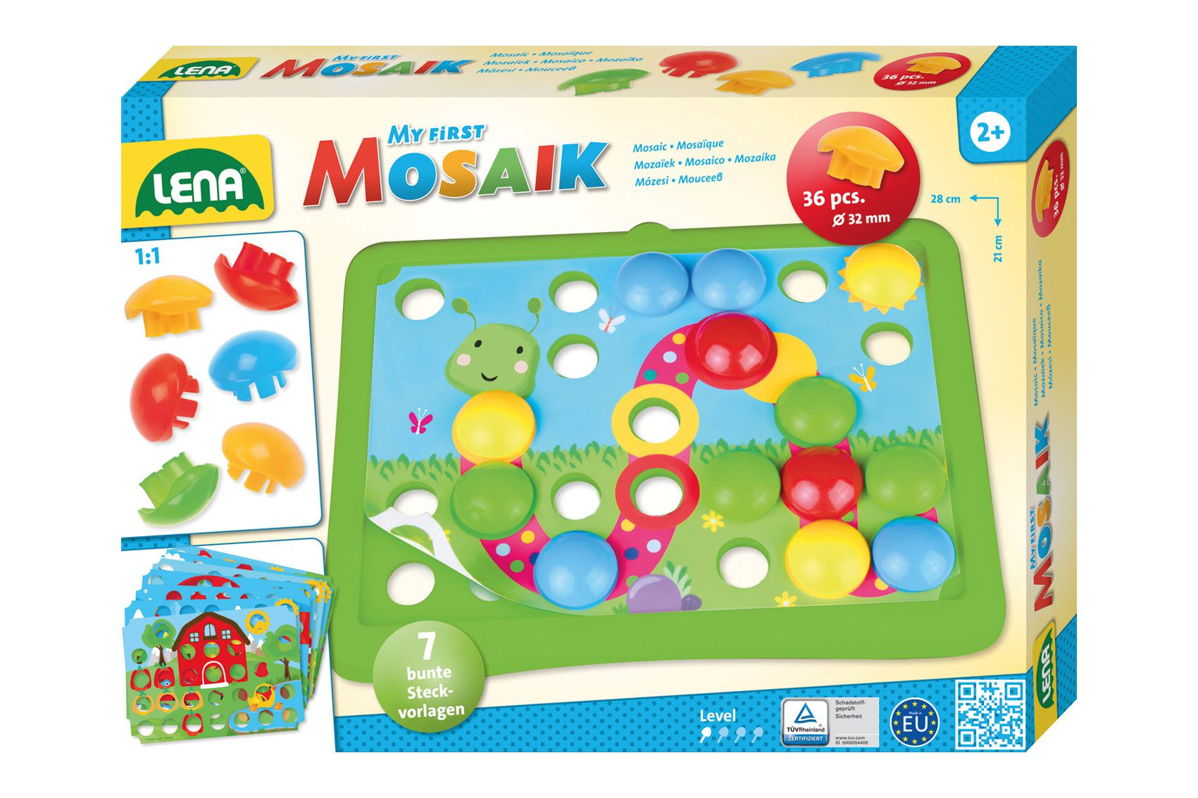 Lena Mozaika klobouček příroda 3,2cm hladký 36ks + předlohy 7ks pro nejmenší v krabici 33x24x4cm 24m+