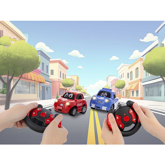 Robustní vozidla jsou dokonale přizpůsobena potřebám malých závodníků. Díky promyšlené konstrukci zůstávají vozy stabilní a bezpečné i při divokých jízdních manévrech. Technologie 2 GHz umožňuje ovládat obě vozidla současně a bez rušení – ideální pro vzrušující honičky ve dvou.