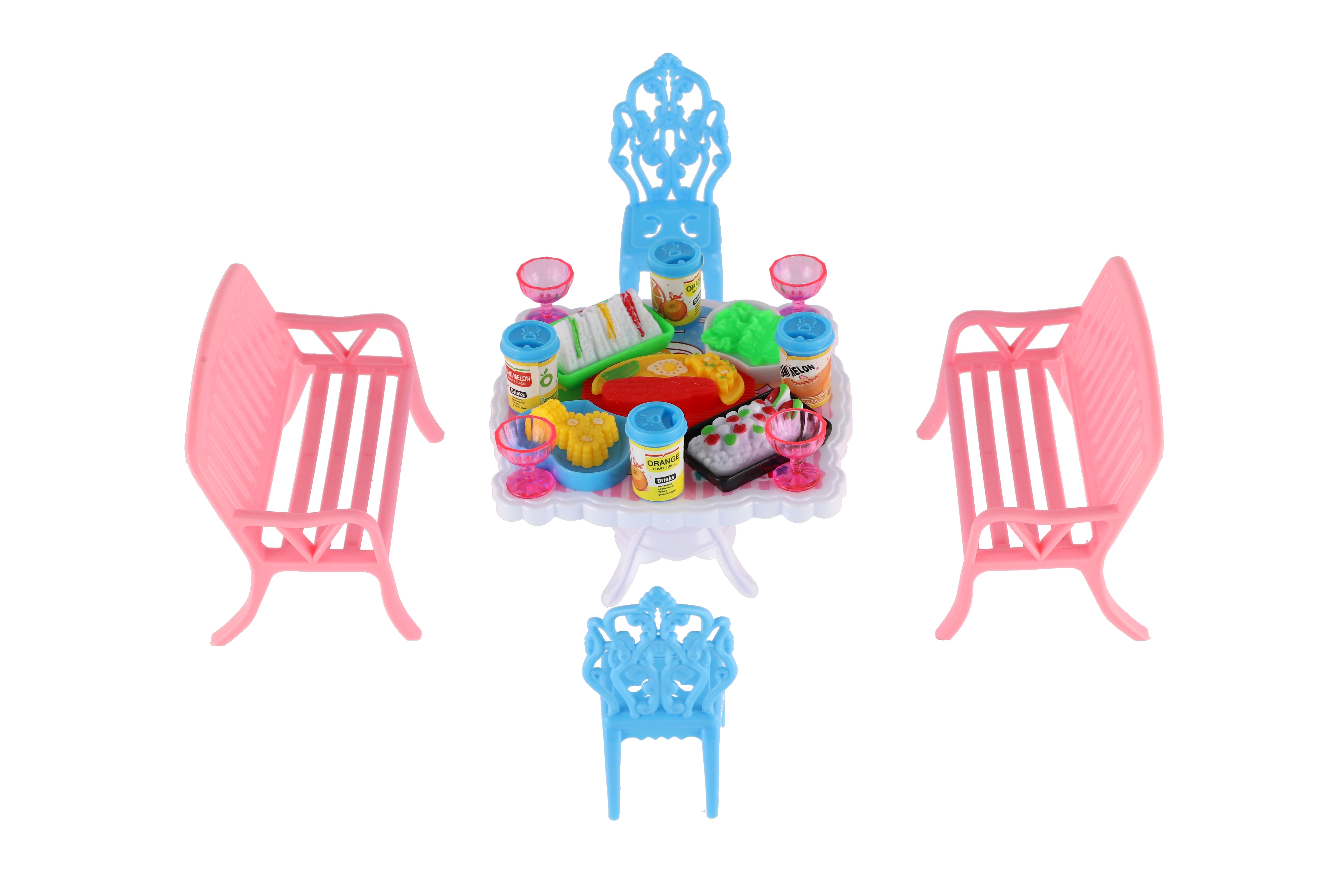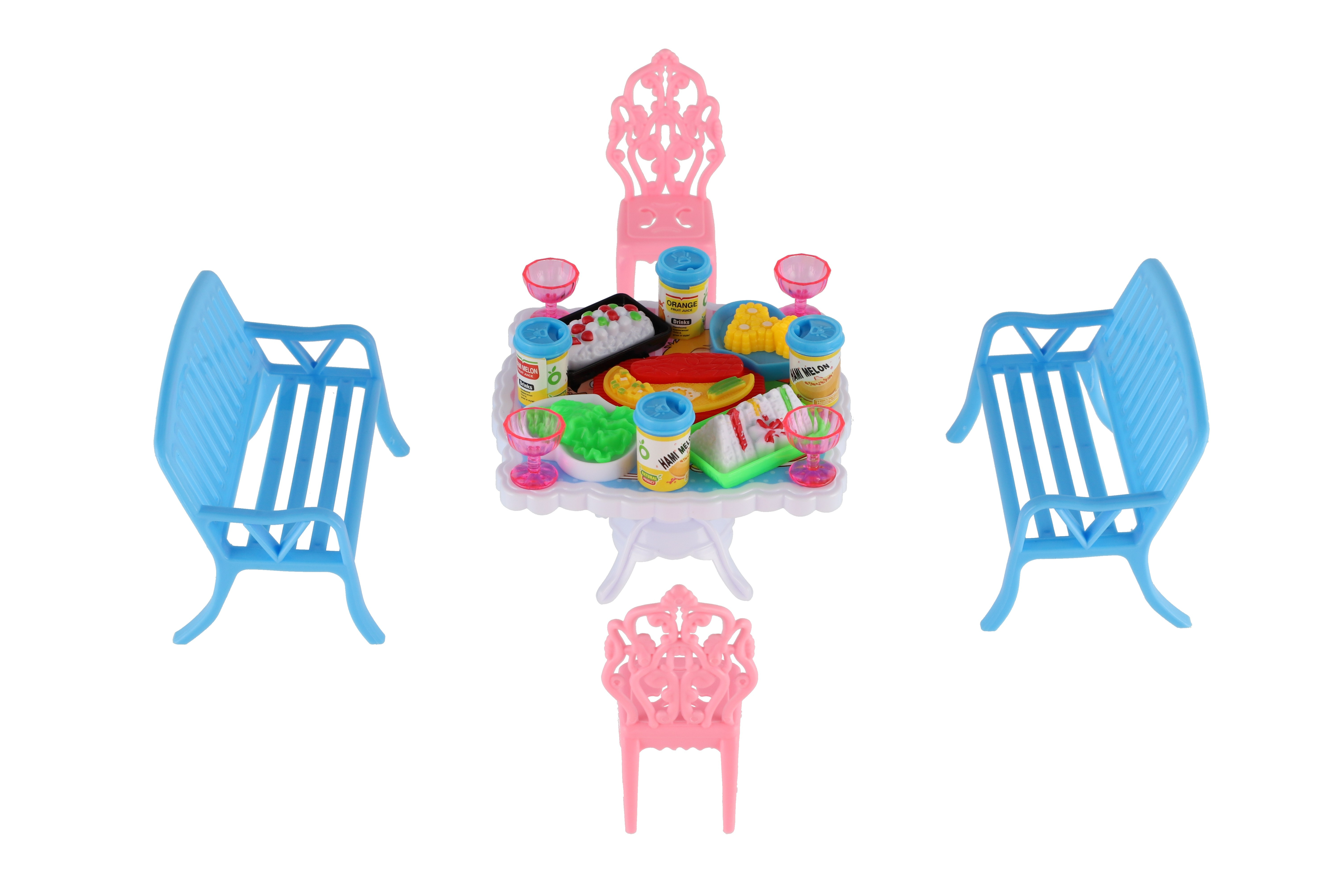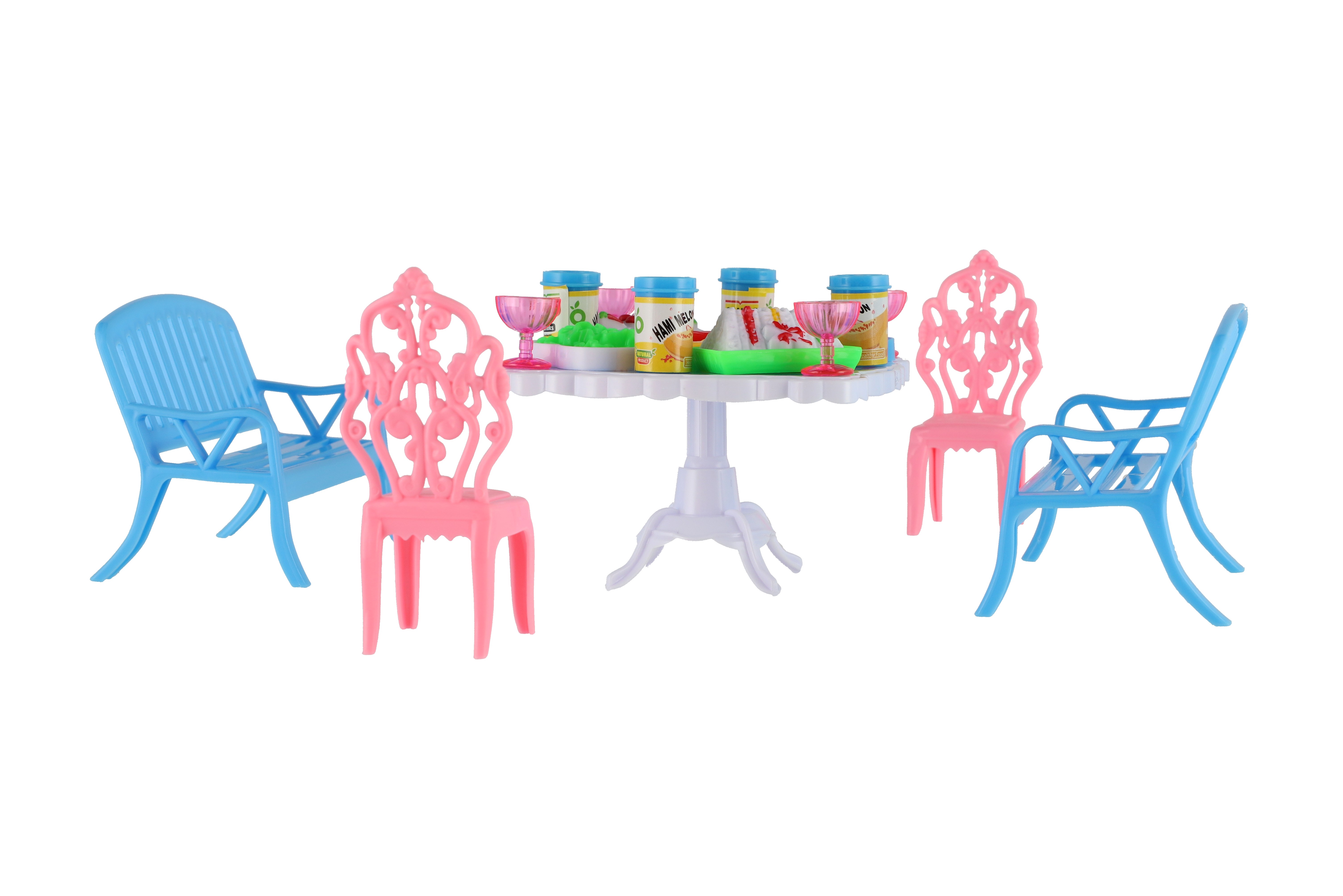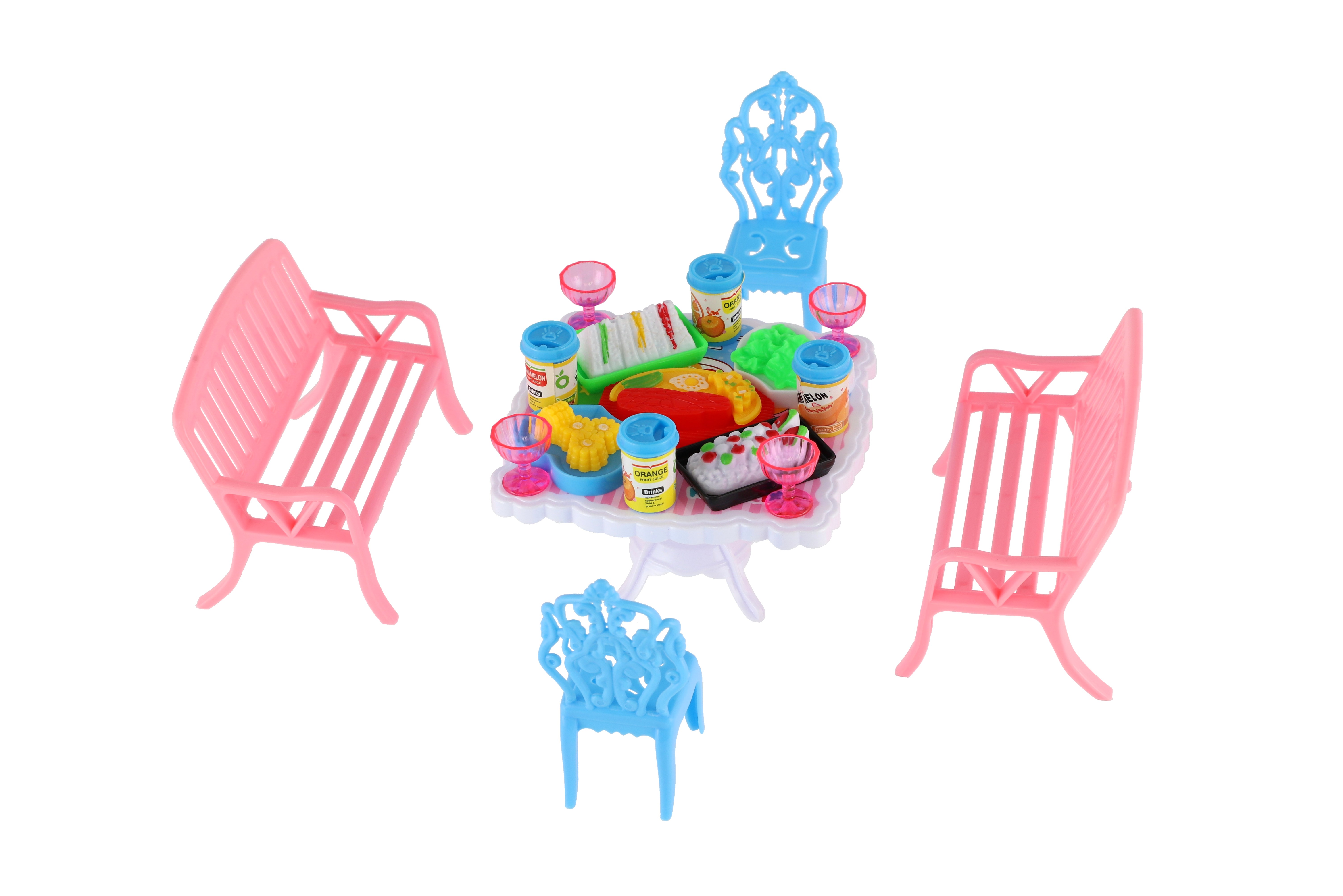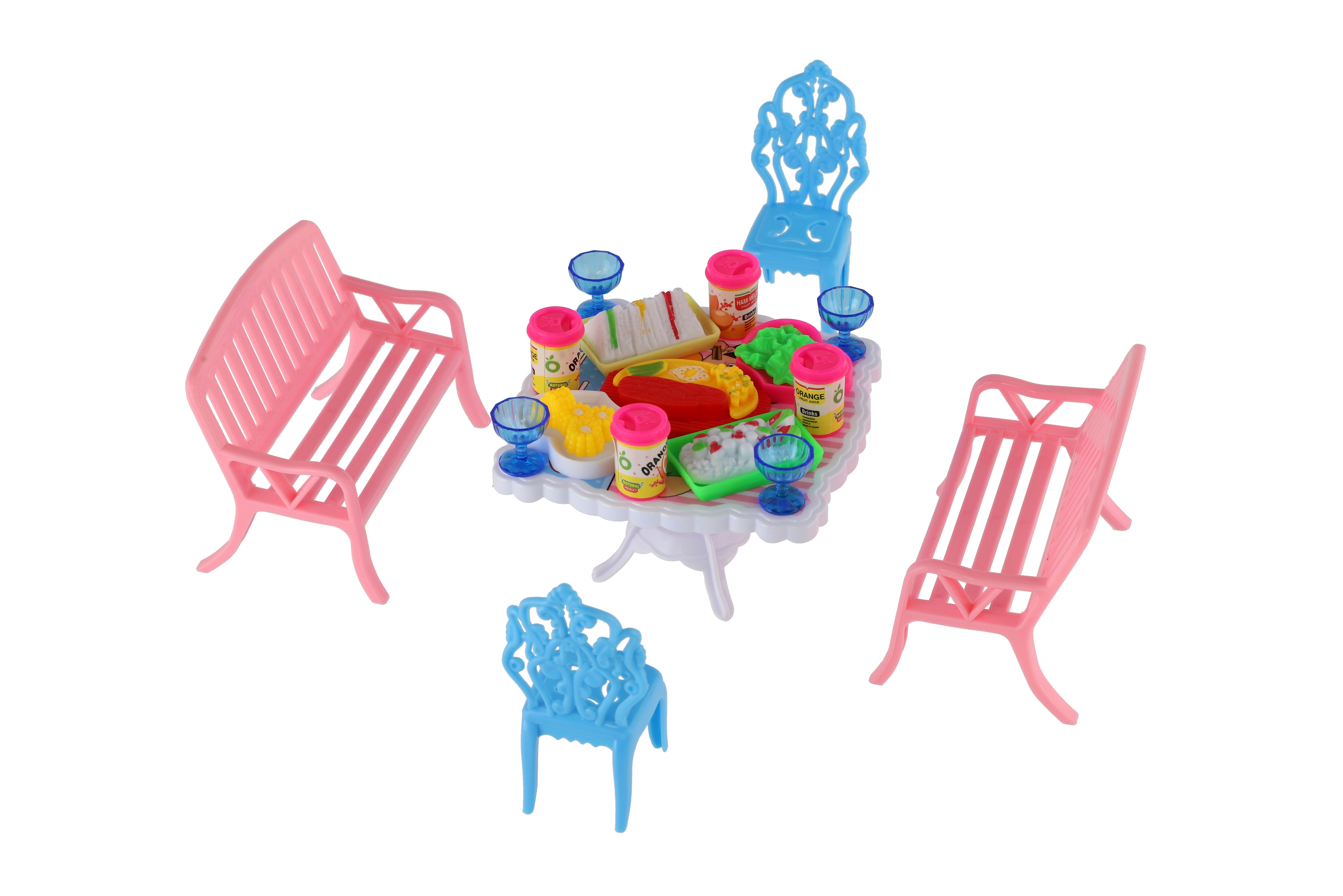 Potřebujete Vašim panenkám zpříjemnit sezení před domečkem? V tom případě je tato sada přesně pro Vás. Dvě lavičky, dvě židličky, stůl a doplňky v podobně pohoštění na stůl bude jistě oblíbenou část obydlí pro panenky. Rozměr balení: 14 x 11 x 16 cm Vhodné pro děti od 3 let