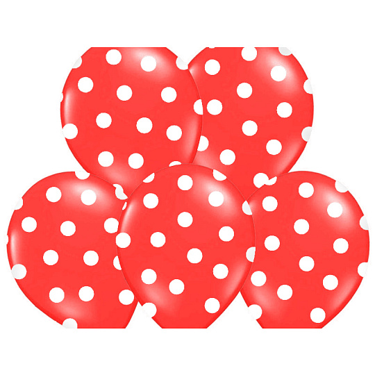 Nafukovací balónky v červené barvě s bílými puntíky jsou parádním doplňkem všech oslav a večírků.